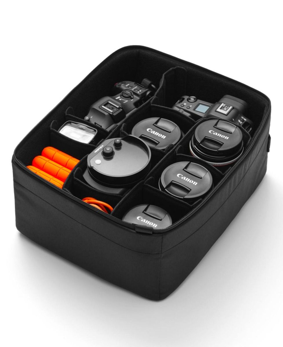 Le sac Ramverk Camera Insert L Black Out de Db protège et organise l’équipement photo grâce à ses séparateurs ajustables, ses deux accès rapides et ses options de transport en bandoulière ou à la main.
