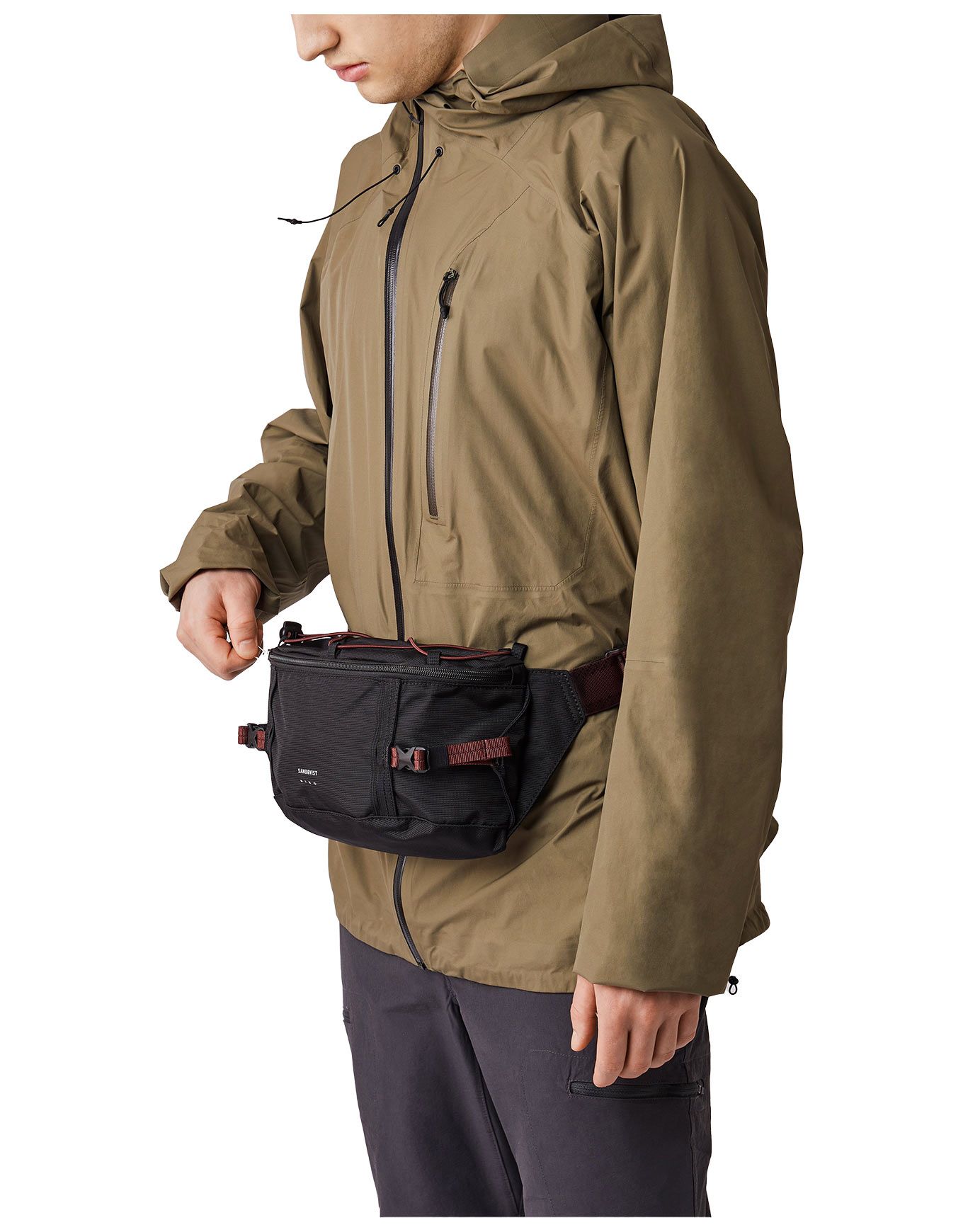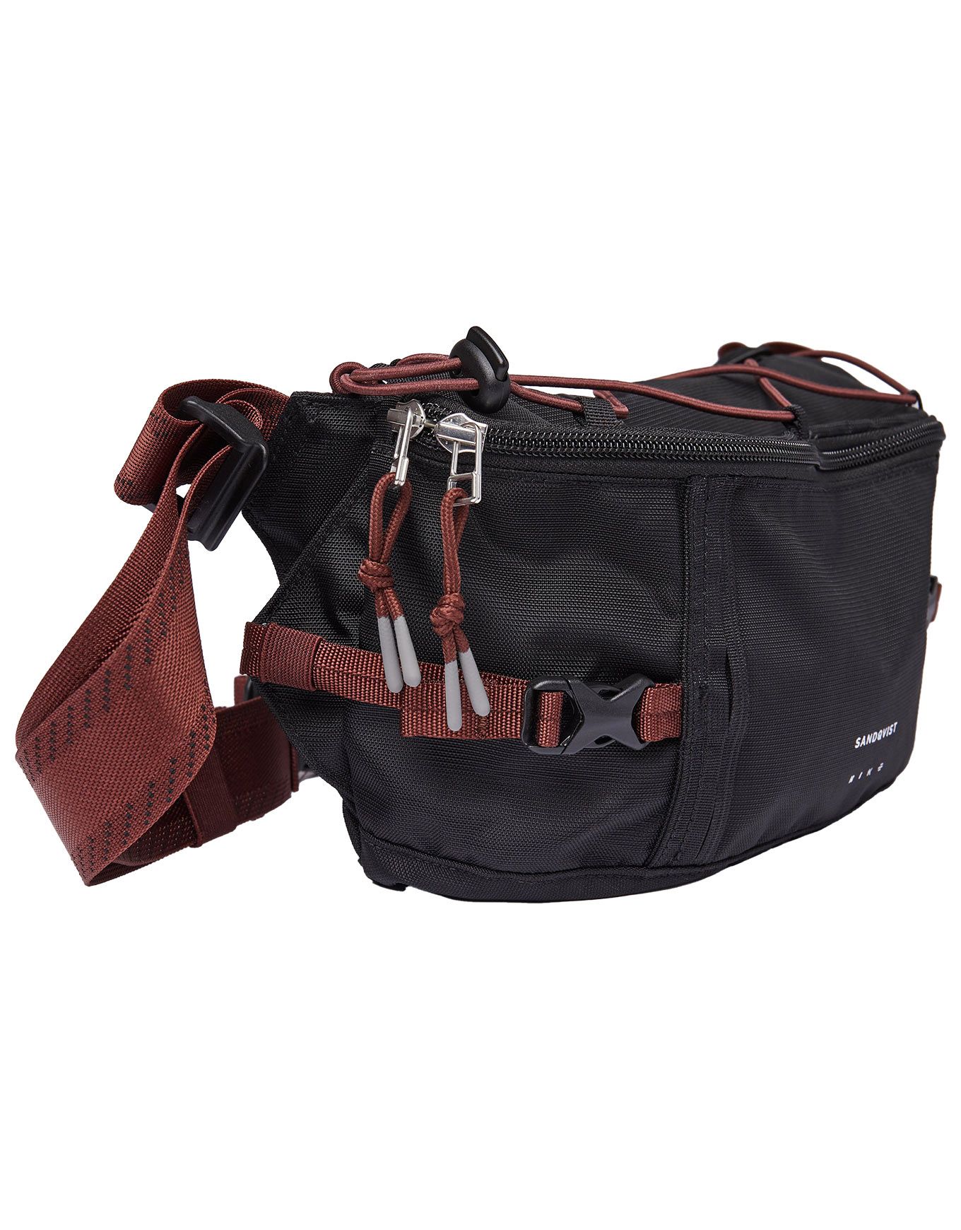Sac banane Sandqvist Allterrain Hike Black en nylon 100 % recyclé ultrarésistant, conçu pour les randonnées légères en montagne. Élastiques supérieurs pour attacher accessoires, compartiments astucieux, protection efficace contre l’humidité.