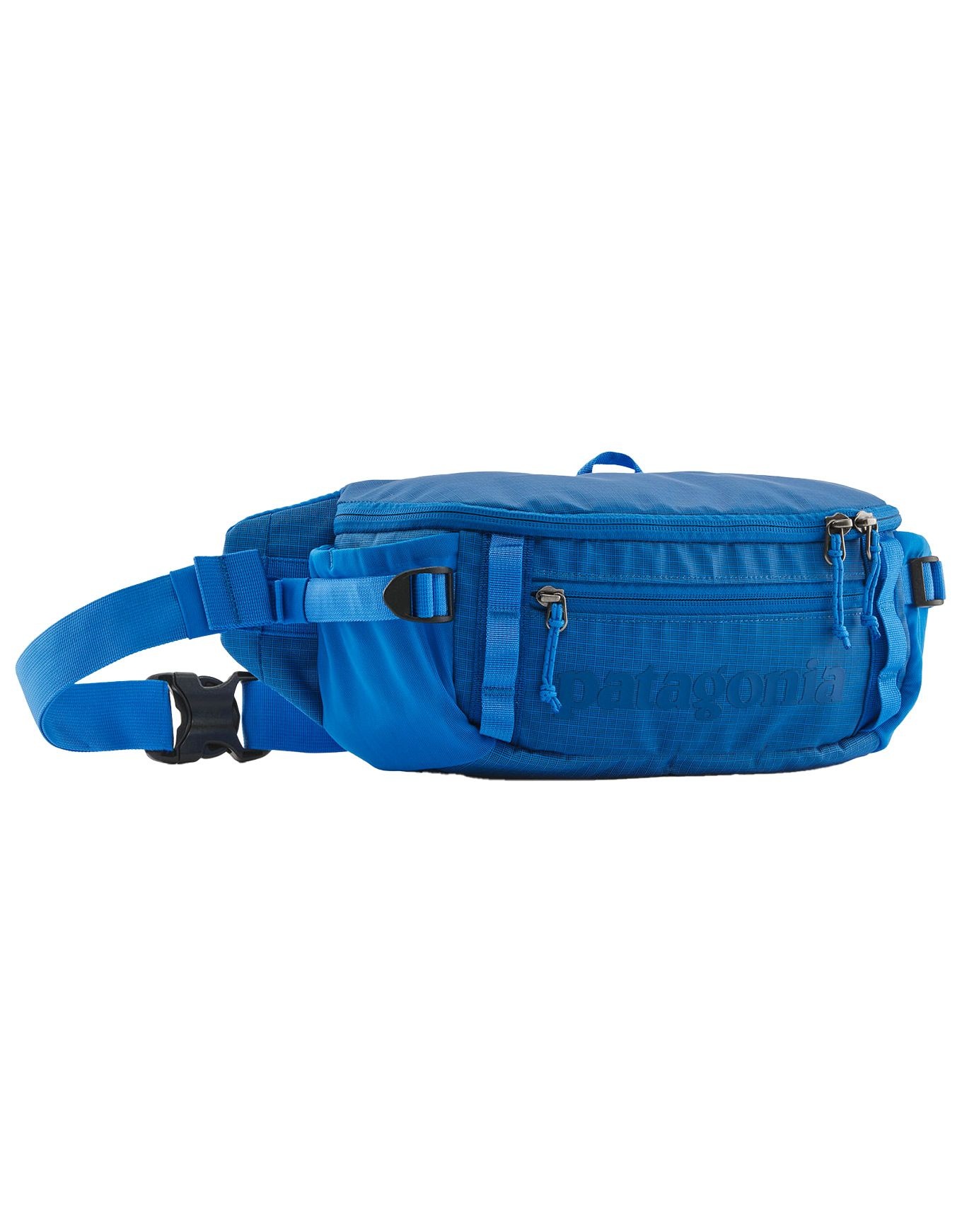 Sac banane Patagonia Black Hole 5L Vessel Blue en matière recyclée Fair Trade Certified™, avec 2 poches zippées et ceinture réglable respirante pour escapades et voyages.