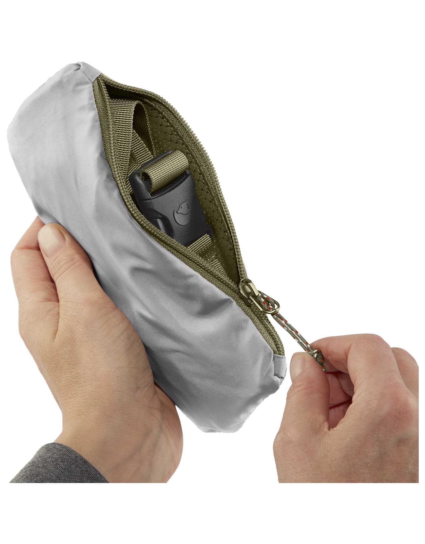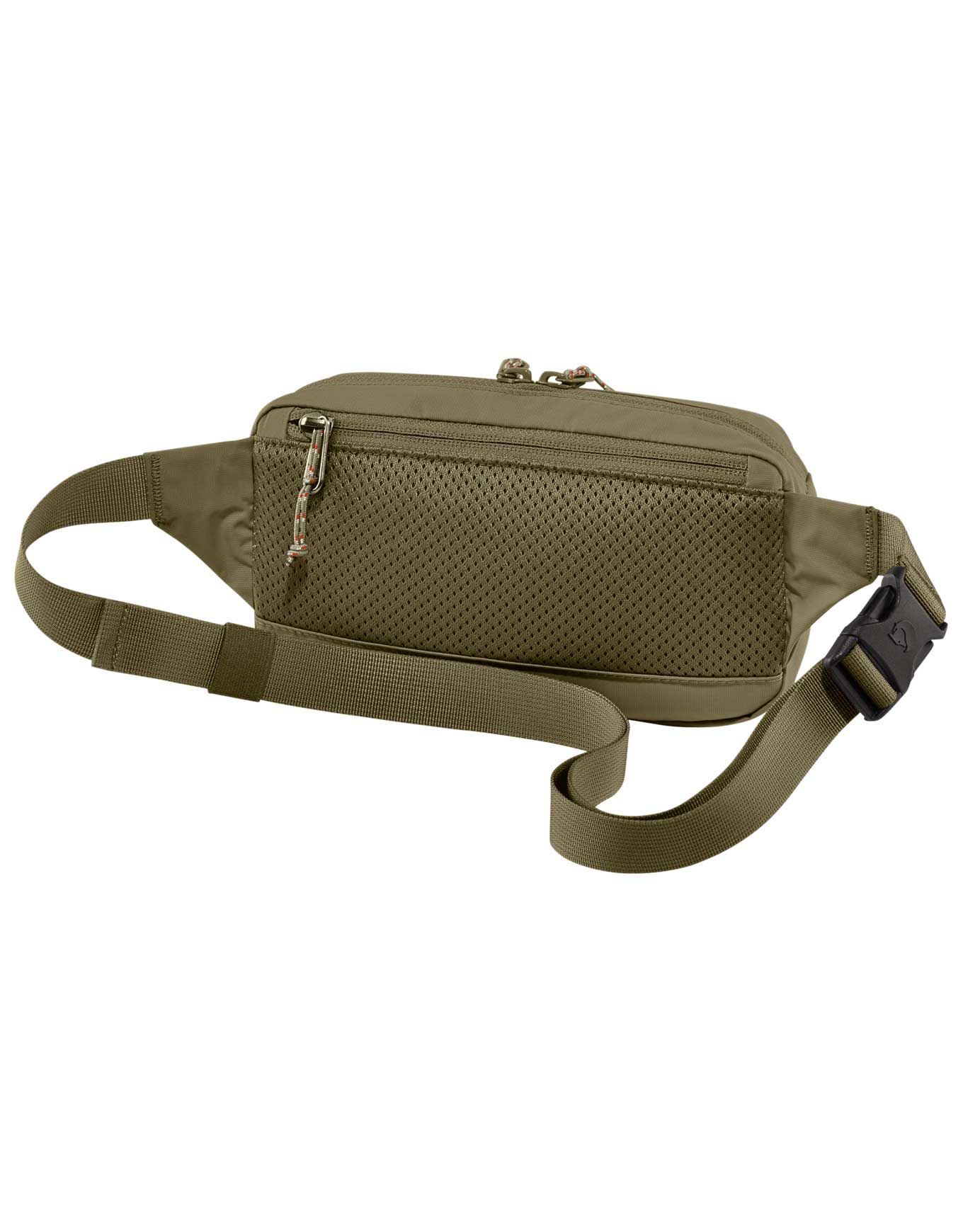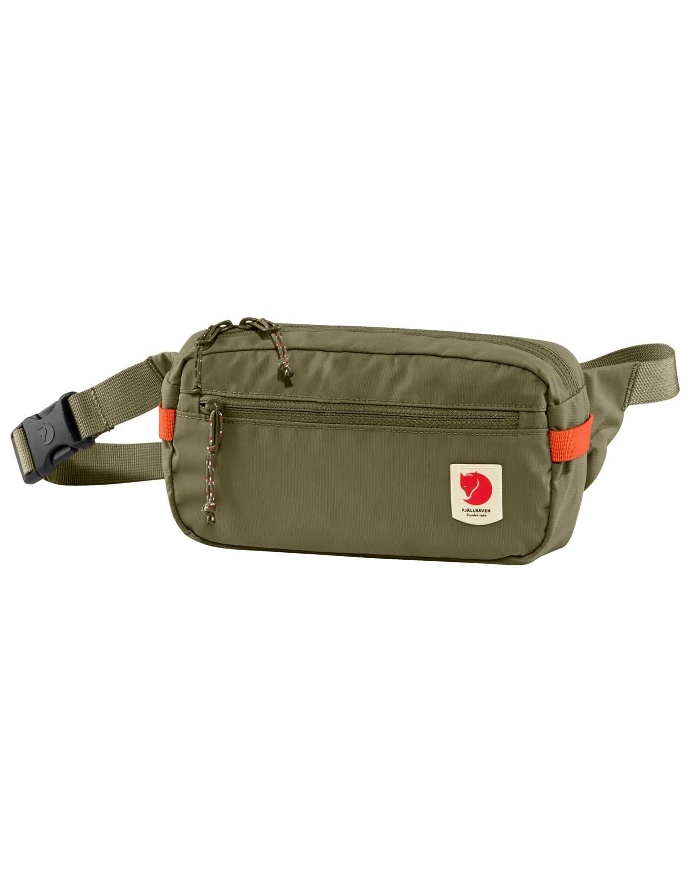 Banane Fjällräven High Coast Hip Pack Green, légère en nylon recyclé imperméable, compartiment zippé avec poche ouverte et porte-clés, se replie dans sa poche pour un encombrement minimal.