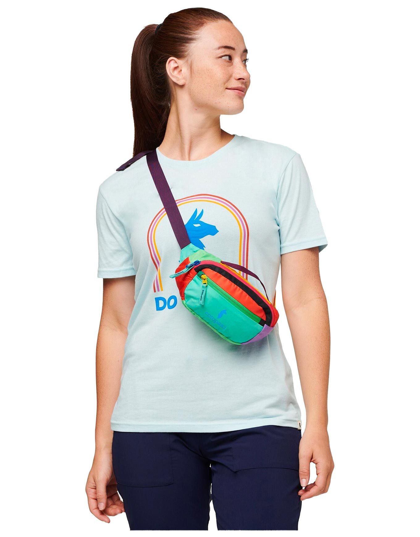 Sac banane Cotopaxi Kapai 1,5L Del Día en tissu 100 % recyclé, confectionné aux Philippines à partir de chutes de tissu pour un modèle unique. Capacité 1,5 L pour emporter l’essentiel en ville ou en montagne sans sac à dos.