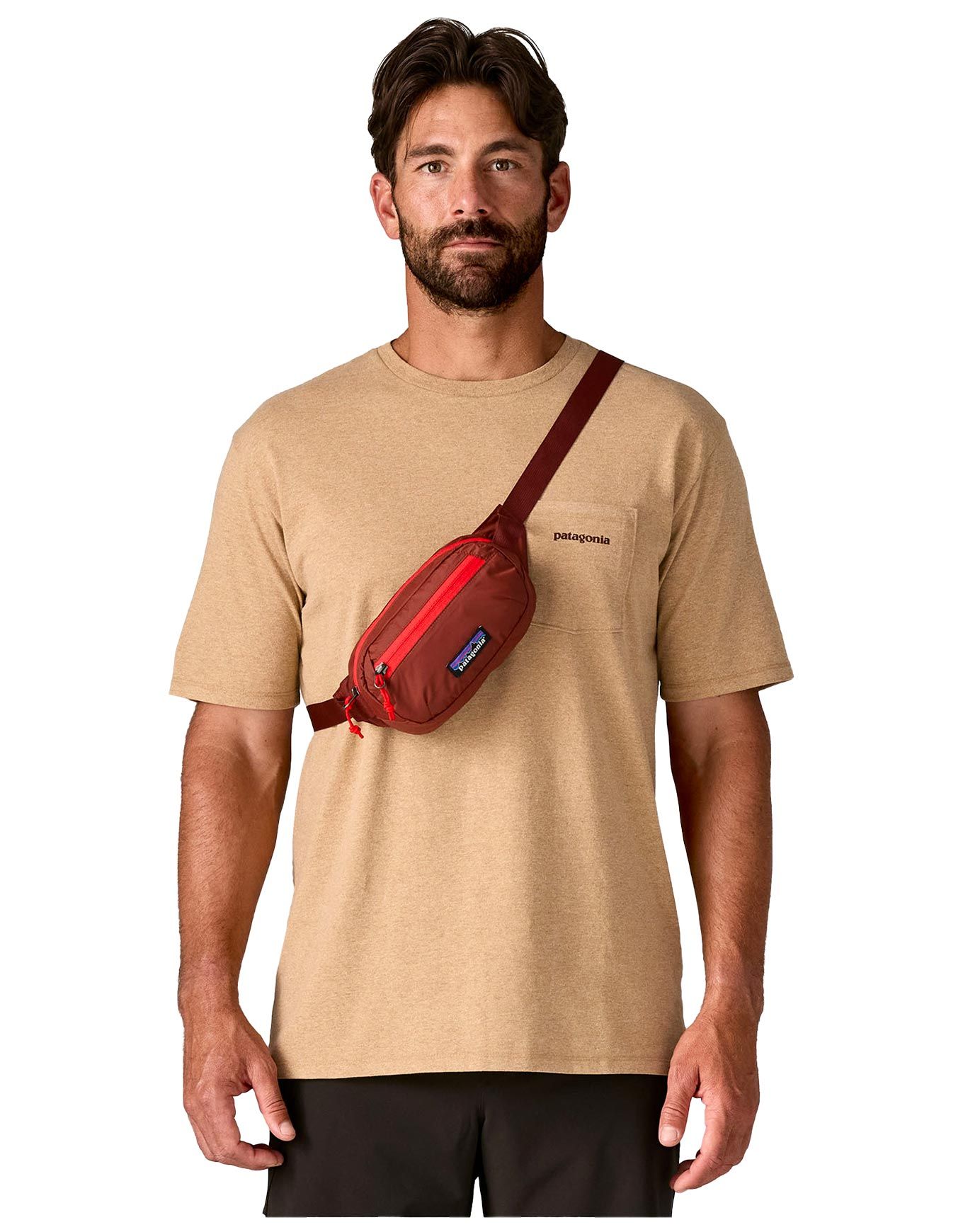 Sac banane Patagonia Terravia Mini Hip Pack Dried Vanilla en nylon recyclé léger, résistant et compressible, avec compartiment principal et poche frontale zippée convertible en housse de rangement.