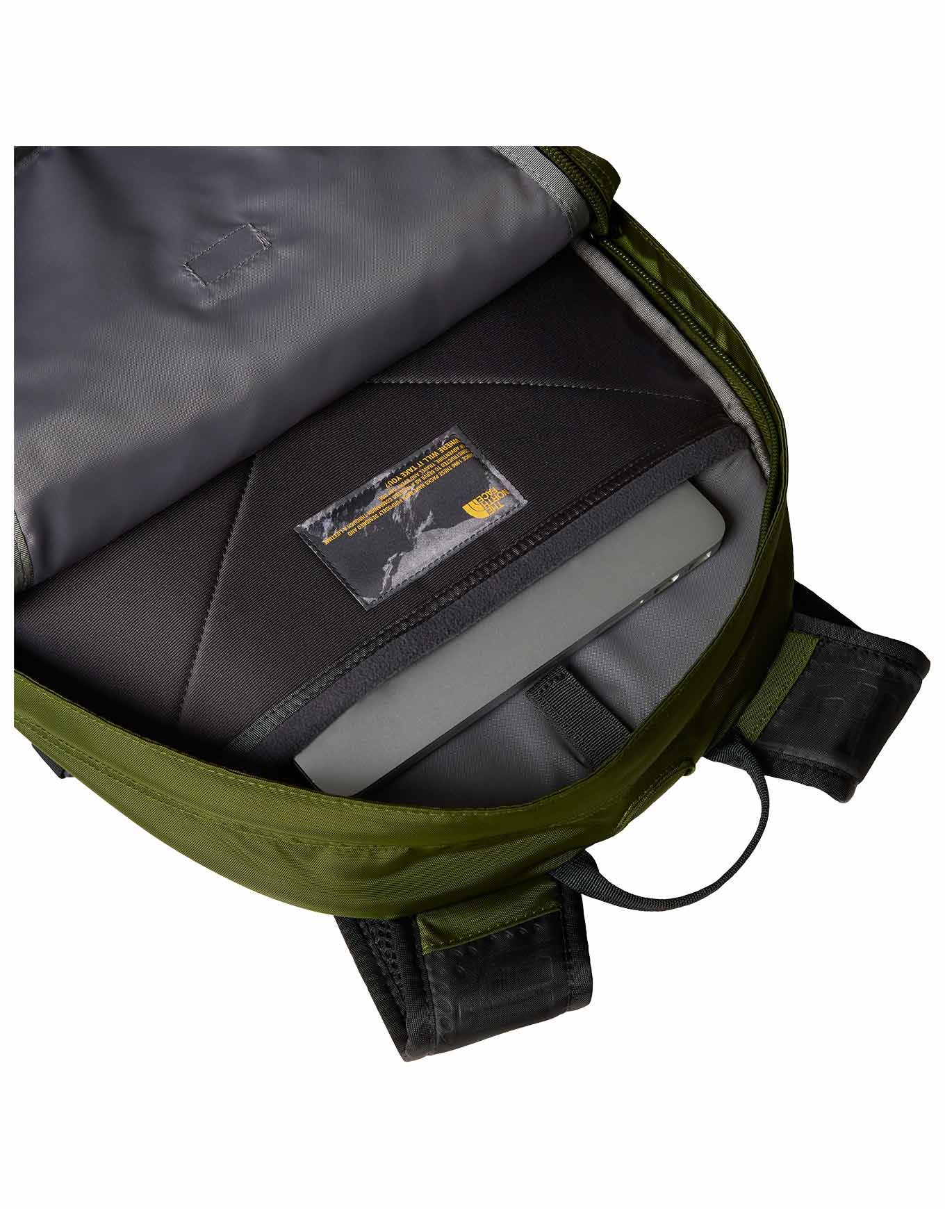 Sac à dos The North Face Borealis Woodland Green TNF Black, équipé du système FlexVent™ certifié, offre compartiment 15″, poche polaire et organisation optimale pour ville ou campus.