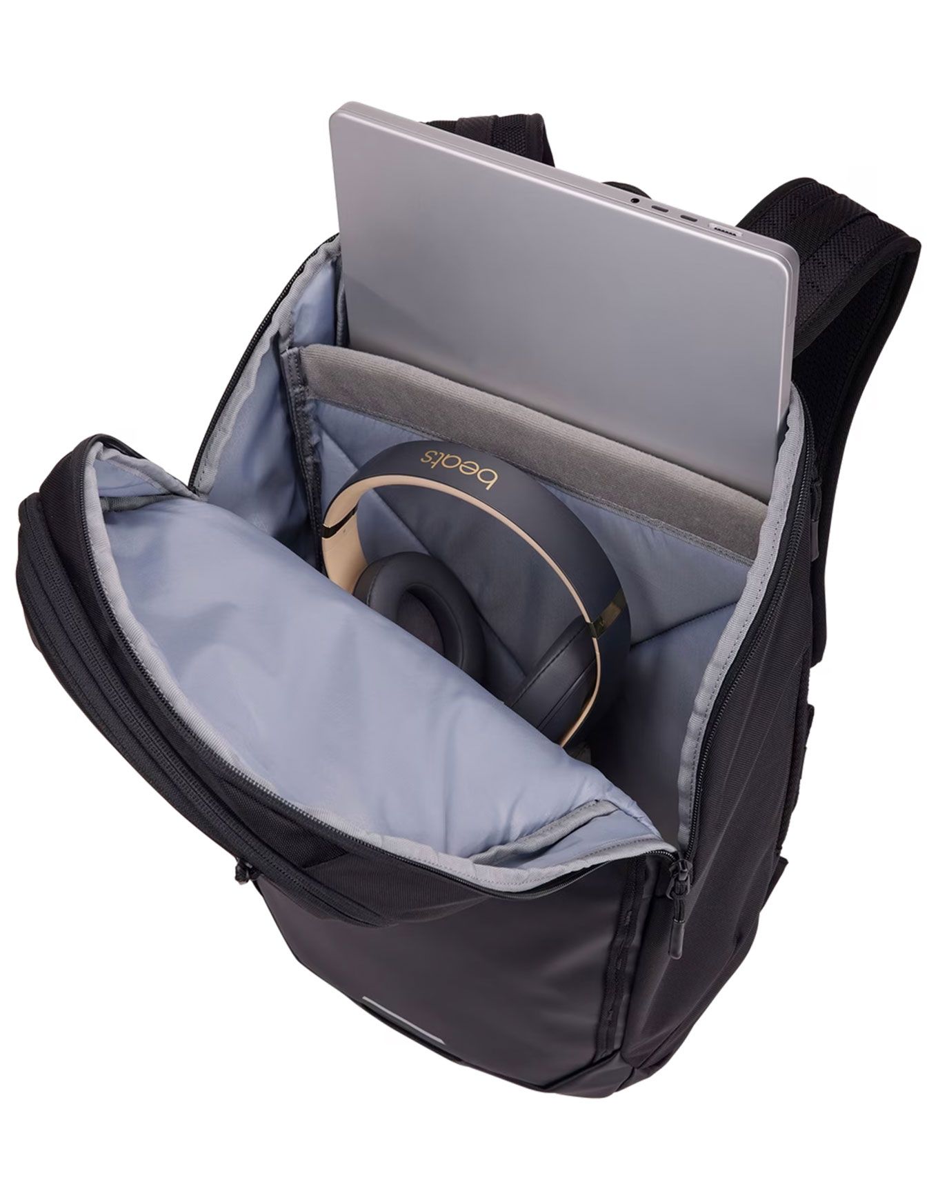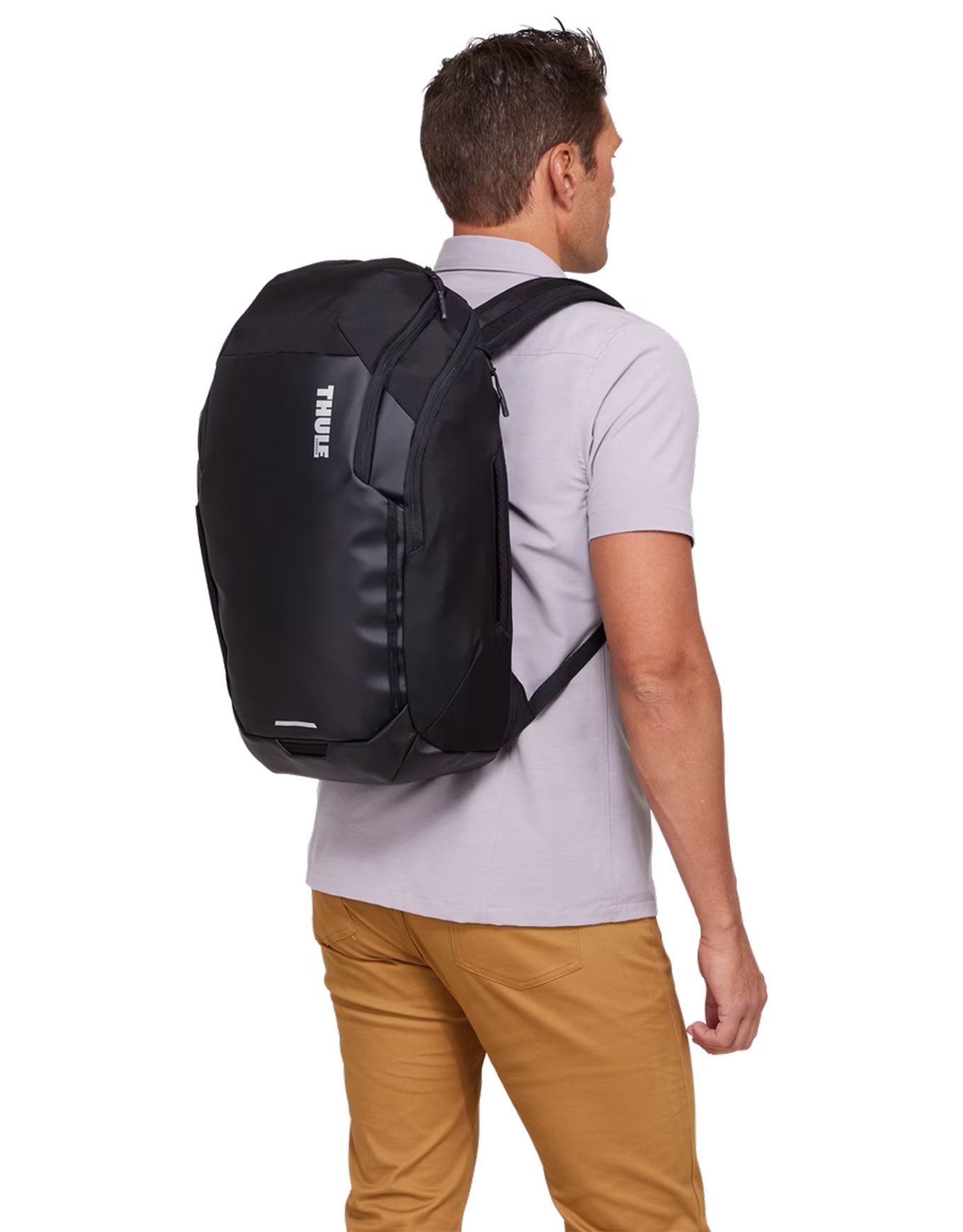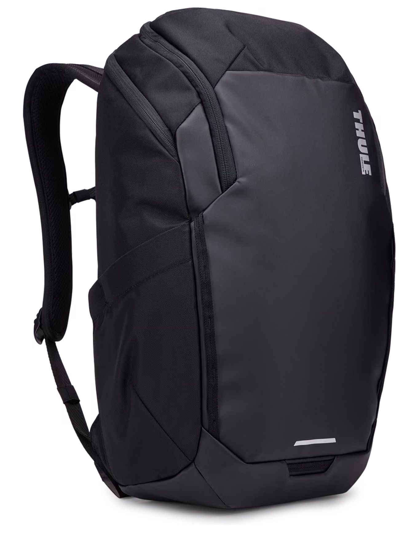 Thule Chasm Laptop Backpack 26L Black : sac à dos unisexe 26 L en matière recyclée résistante, accès latéral PC 16″, bretelles matelassées aérées, pochettes intérieures, porte-clés sécurisé, fixation lampe arrière.