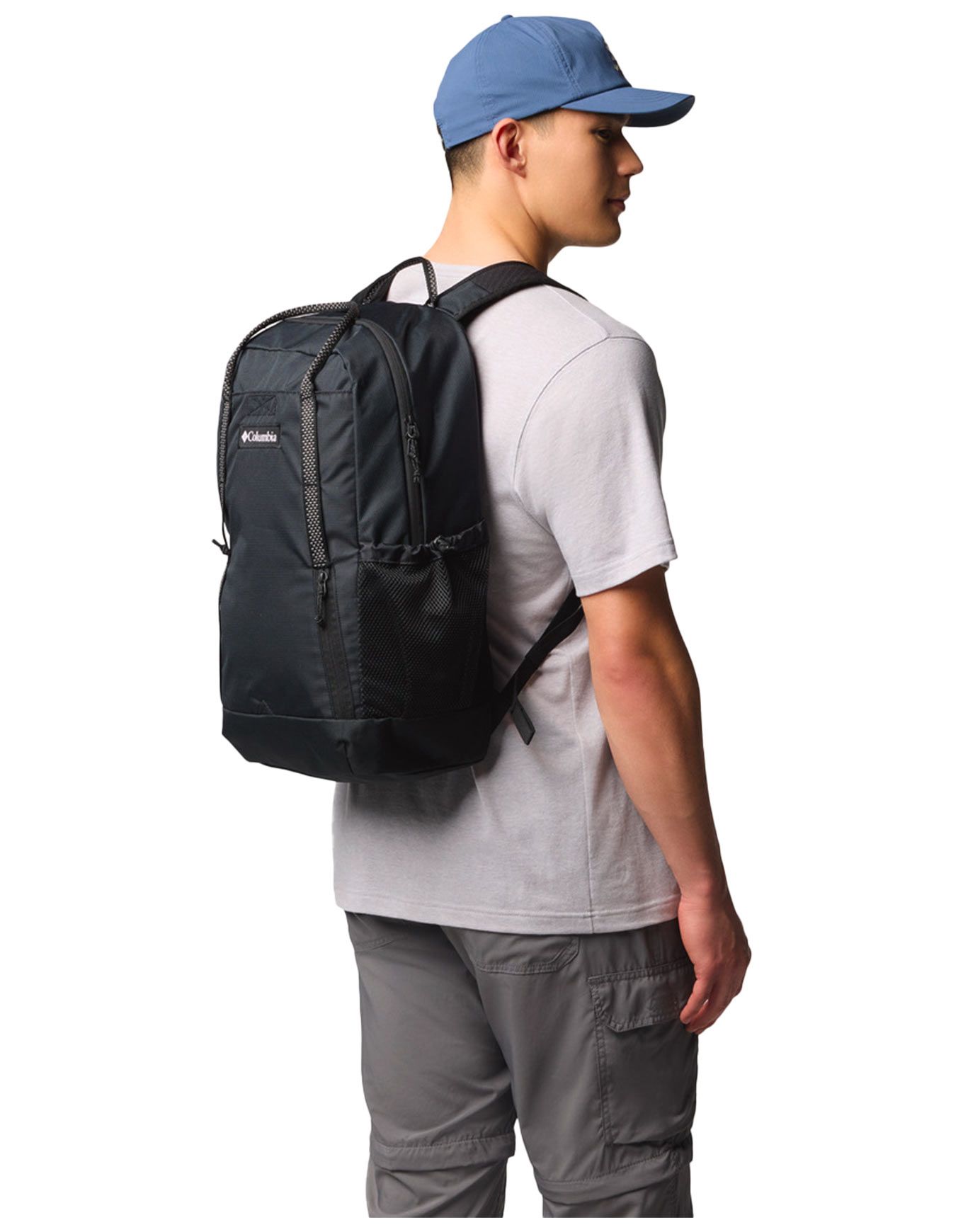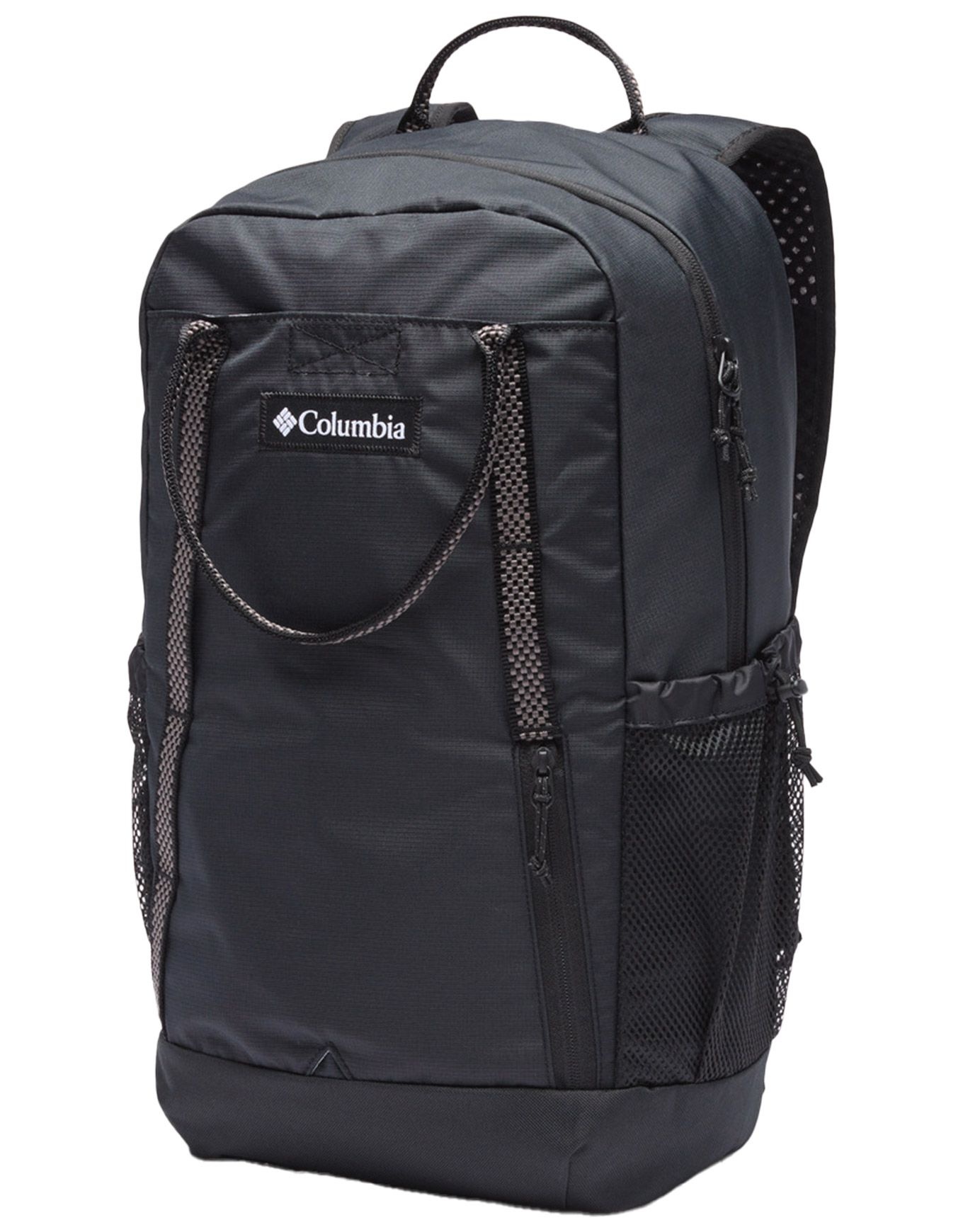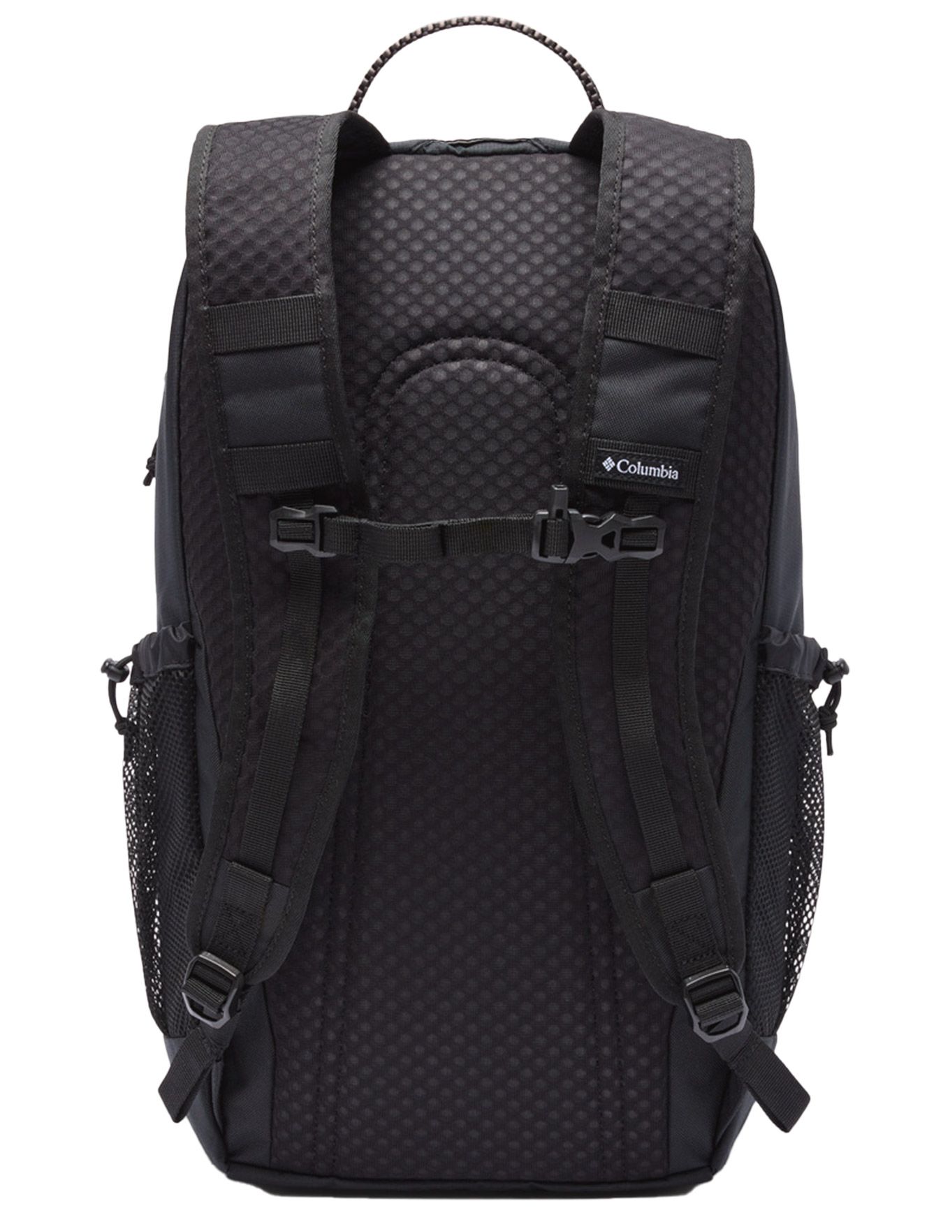 Sac à dos Columbia Echo Mountain 25L Black en polyester déperlant, compartiment principal spacieux, poche avant auto-agrippante, deux porte-gourdes, bretelles et sangle de poitrine réglables avec sifflet.