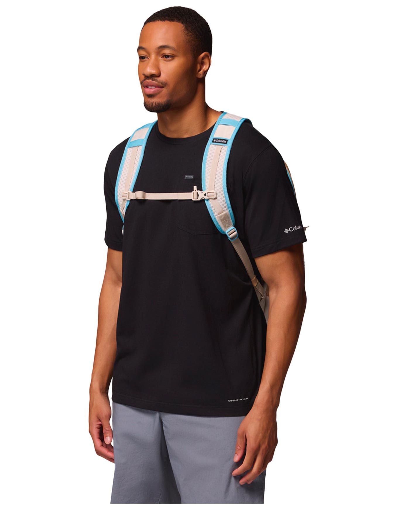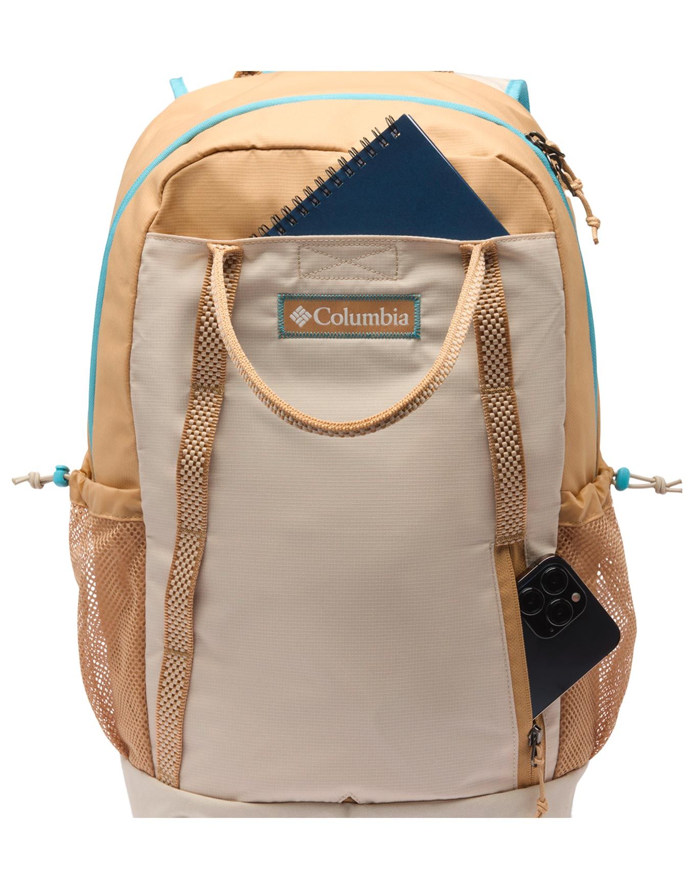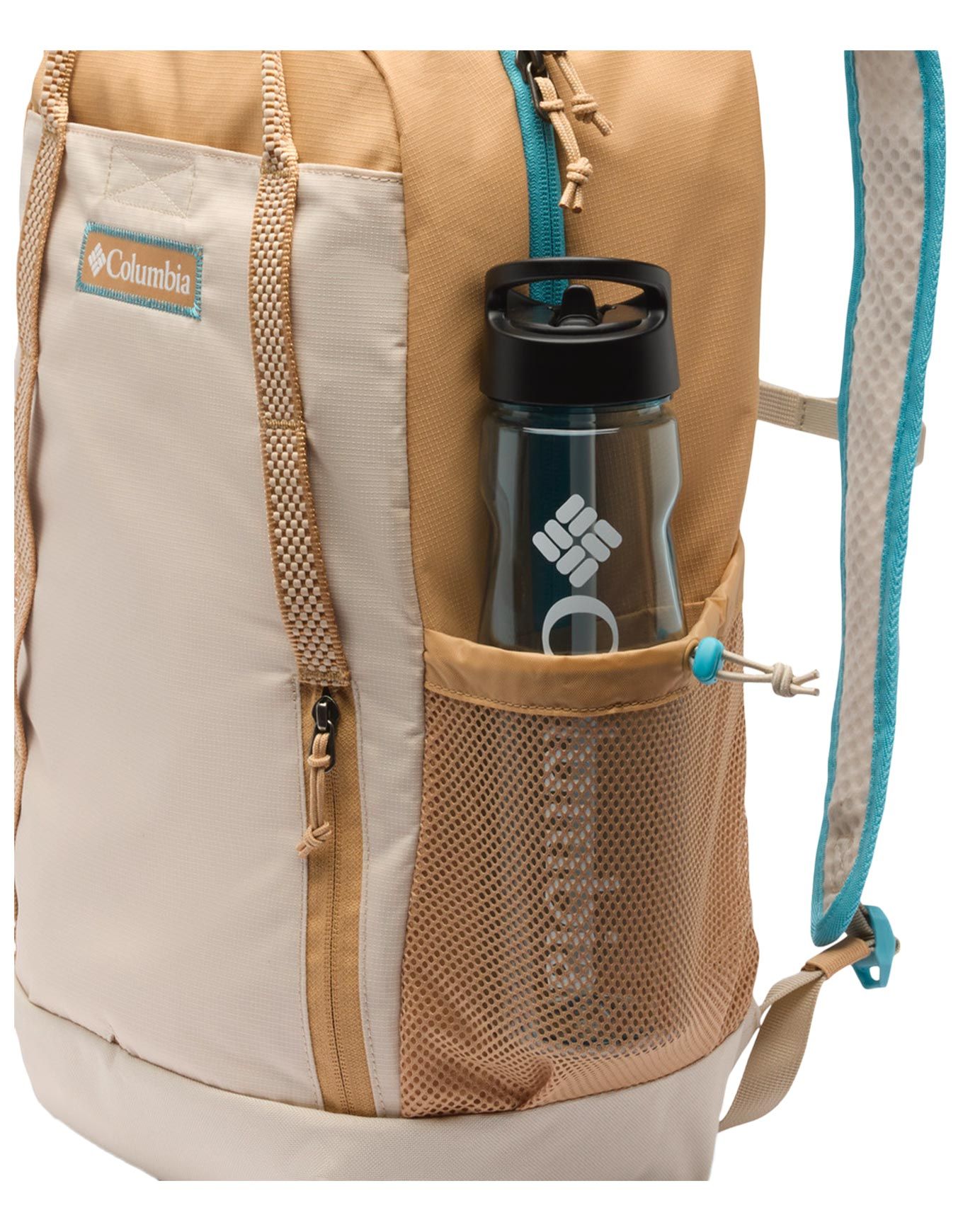 Sac à dos Columbia Echo Mountain 25L Canoe Dark Stone en polyester déperlant, compartiment principal spacieux, poche avant rapide, porte-gourdes latéraux, bretelles réglables avec sifflet, pratique ville/sport.