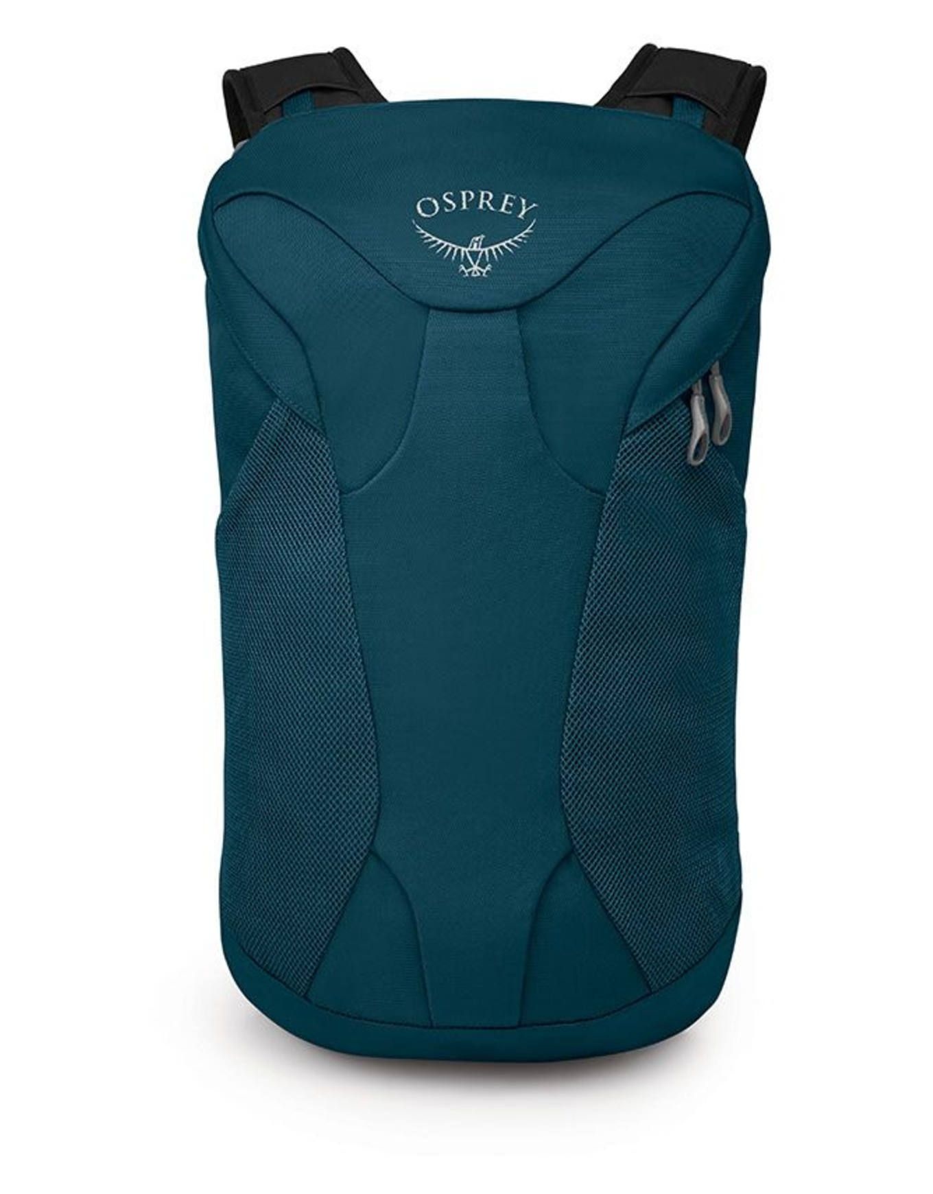 Sac de voyage Osprey Farpoint Fairview Travel Daypack Night Jungle Blue, 13 L, ultra-léger et couplable aux sacs Farpoint/Fairview, devient sac d’appoint idéal pour sorties journalières à l’hôtel grâce à son ouverture zippée rapide.