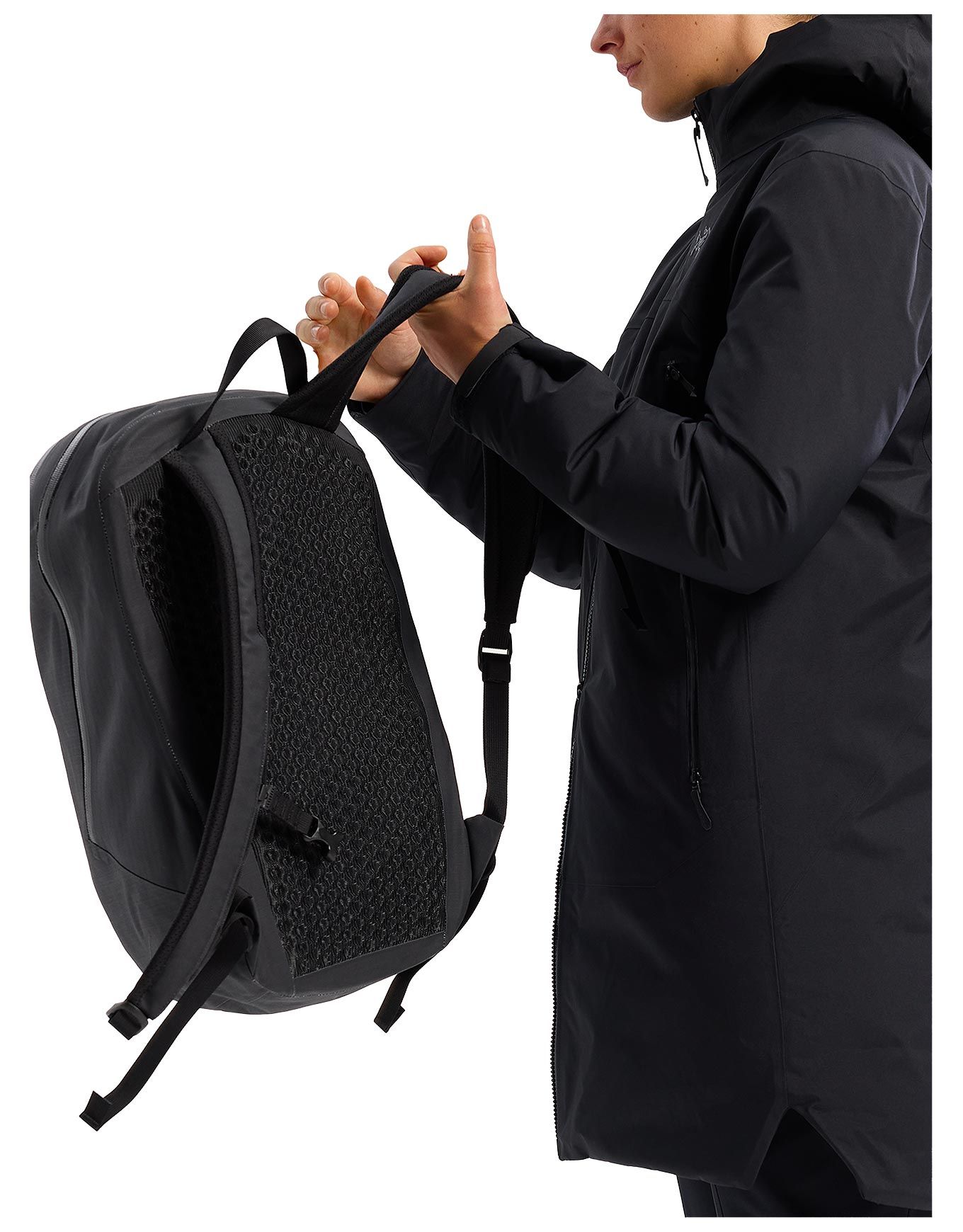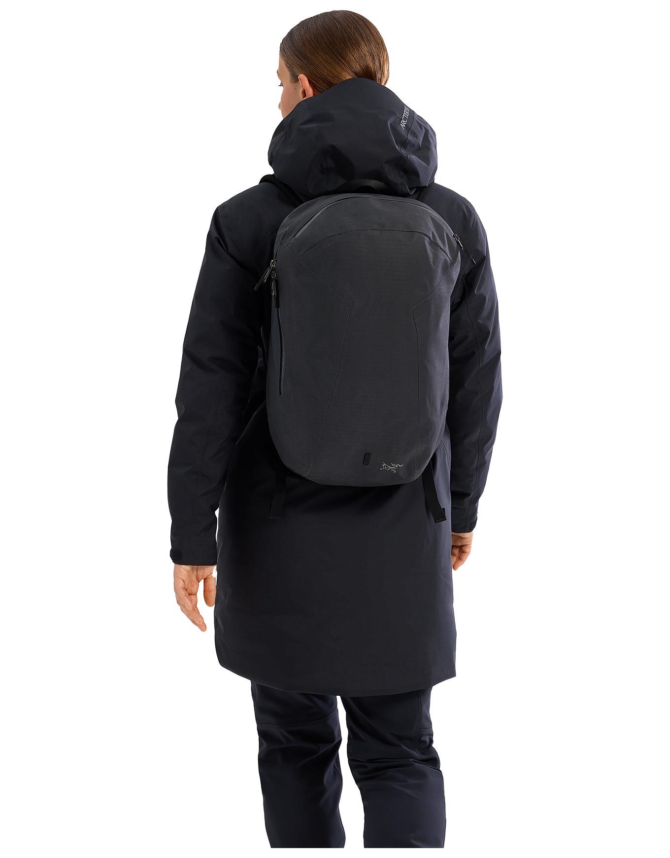 Sac à dos Arc’teryx Granville 16 Black en nylon ripstop N400r-AC², résistant aux intempéries grâce aux micro-coutures scellées. Compartiment principal spacieux, housse stretch pour ordinateur, bretelles et dos AeroForm aérés pour un confort prolongé.