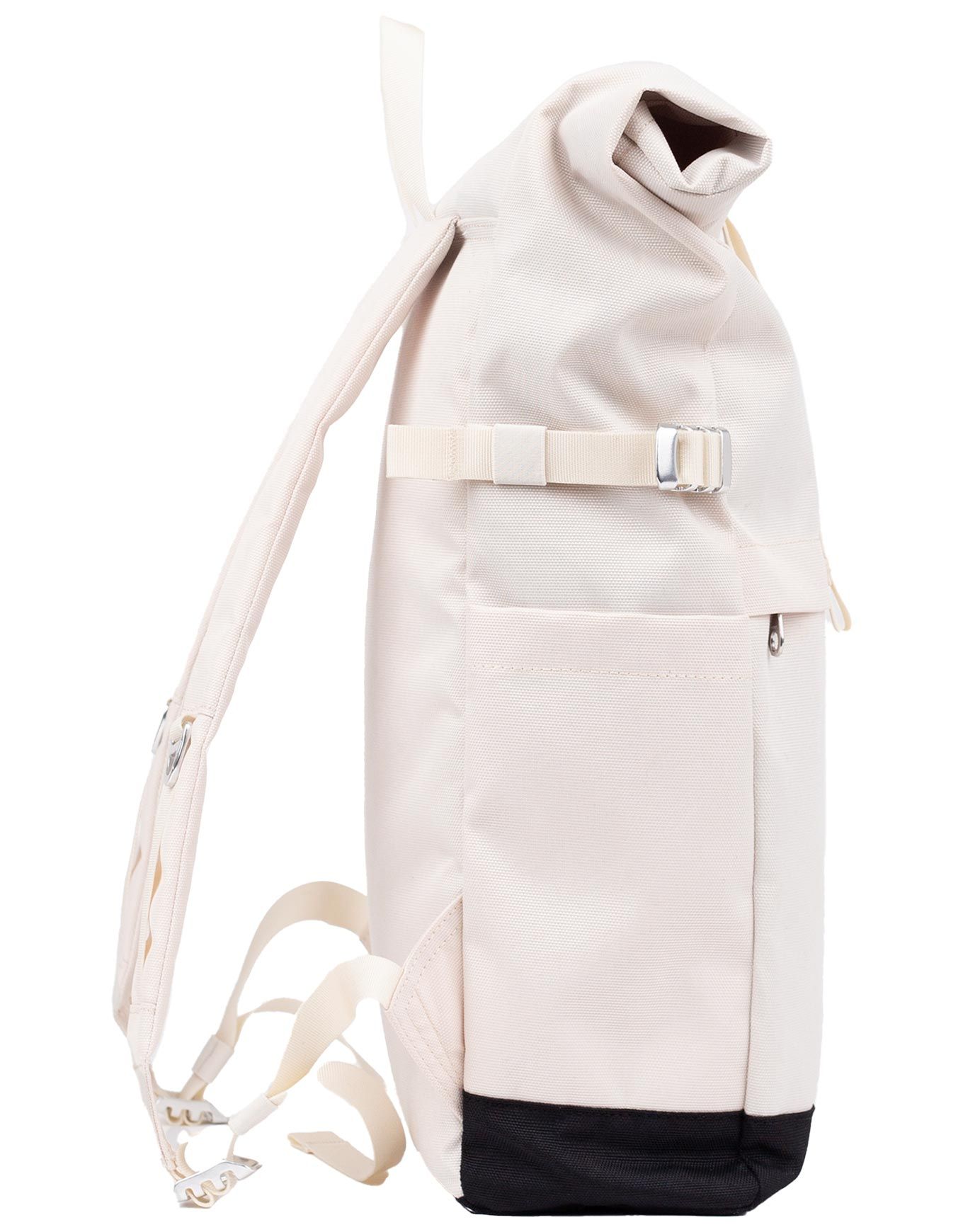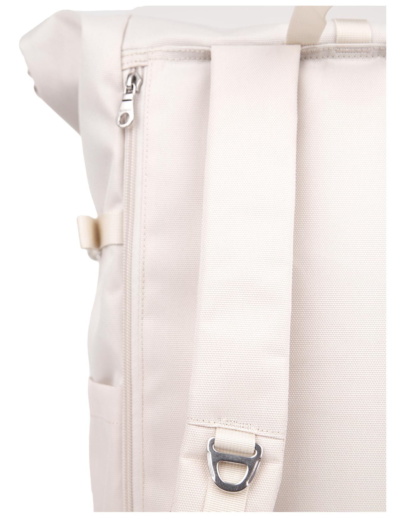 Sac à dos Sandqvist Icon Rolltop Backpack M Birch, 23 L, en tissu déperlant et cuir, offre confort ajustable et rangements sécurisés pour le quotidien urbain.