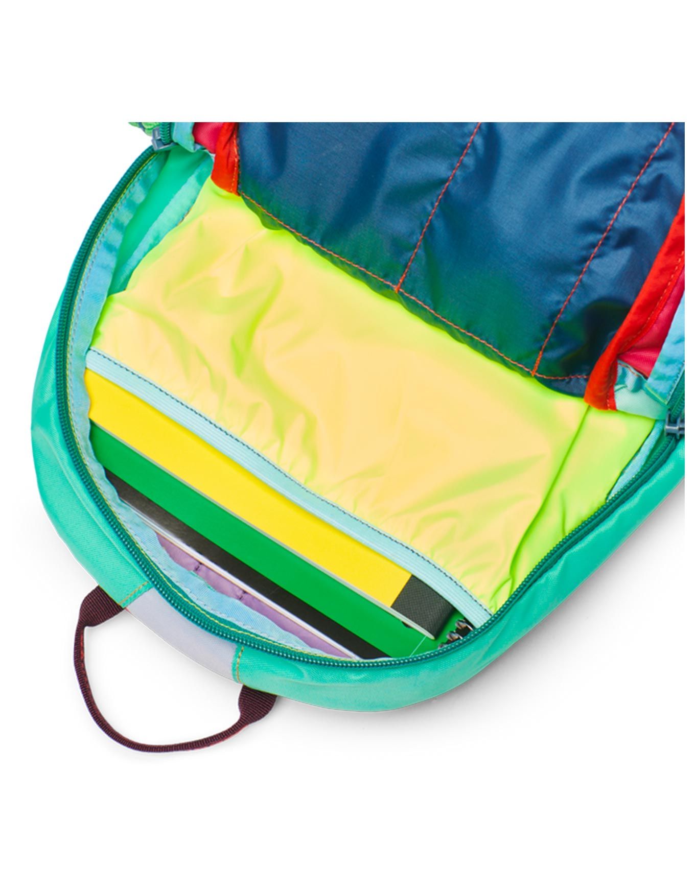 Sac à dos Kids’ Dimi 12L Del Dia Cotopaxi en tissu 100% recyclé, unique par sa couleur surprise, offre rangement organisé, bretelles ergonomiques et panneau dorsal aéré pour jeunes explorateurs.