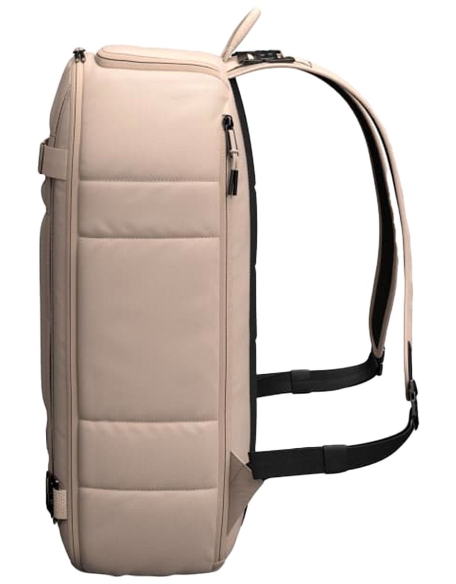 Sac à dos Db Ramverk 21L Fogbow Beige pensé pour voyager grâce à son ouverture valise, ses rangements mesh, son compartiment ordinateur externe et sa construction résistante spécifique Db.