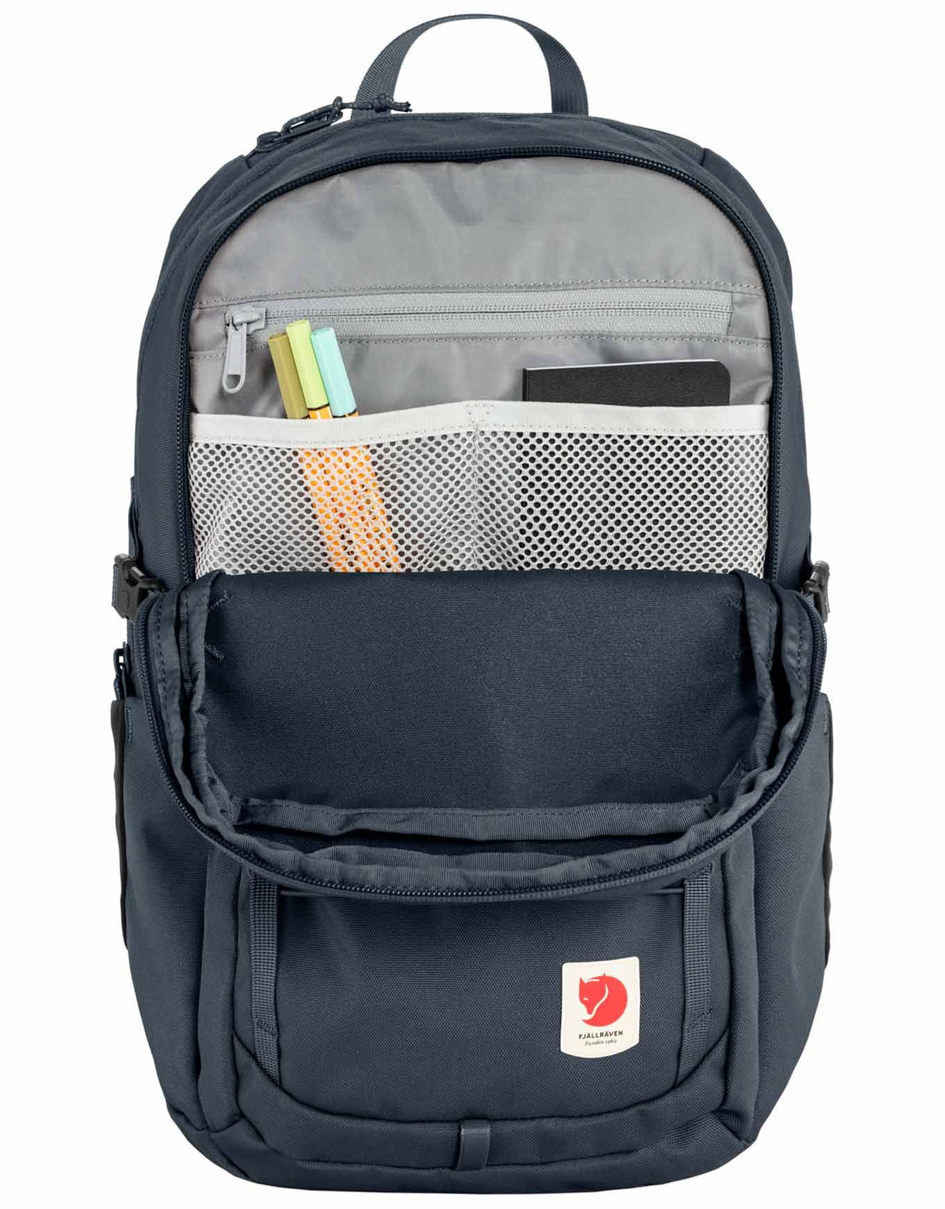 Sac à dos Skule 20 Navy Fjällräven, unisexe 20 L en tissu Oxford déperlant, poche haute rapide, compartiment PC rembourré, dos aéré et bretelles réglables pour confort randonnée ou ville.