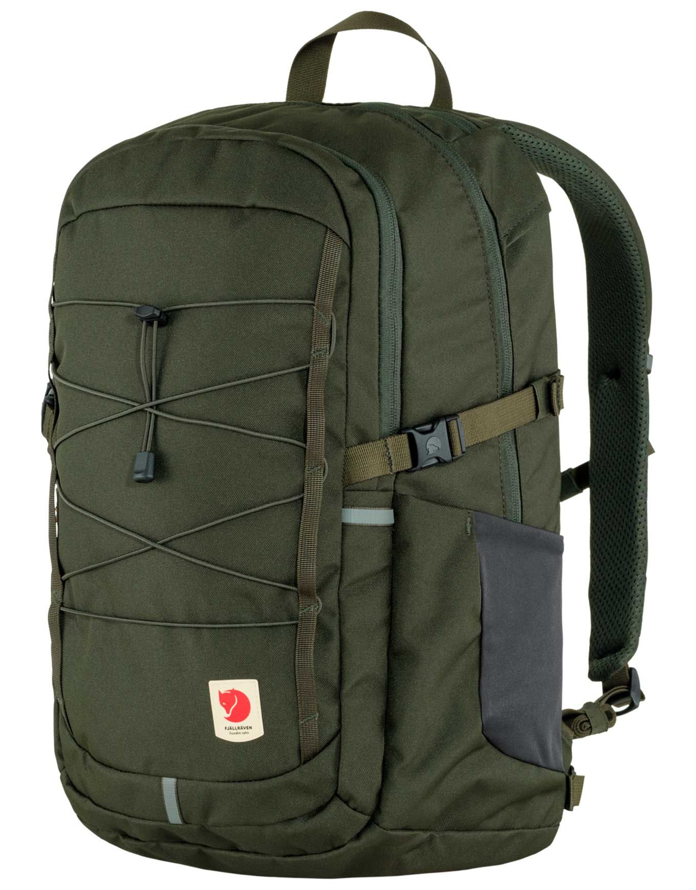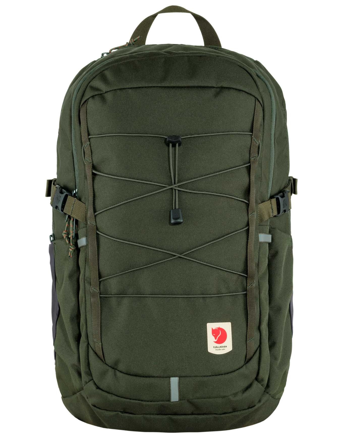 Sac à dos Skule 28 Deep Forest Fjällräven, unisexe 28 L en tissu Oxford léger et déperlant, offre compartiment laptop rembourré, poche zippée supérieure, bretelles et dos aérés réglables pour randonnée ou quotidien.