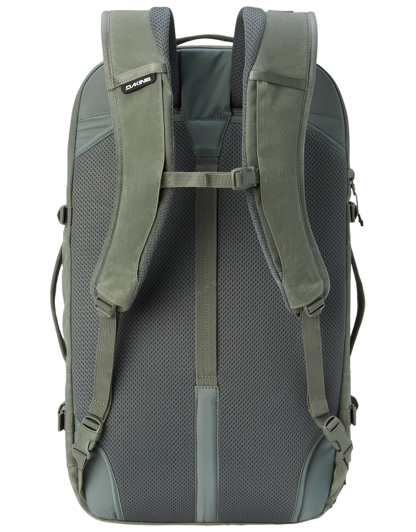 Sac à dos de voyage Dakine Split Adventure Backpack 38L Mulled Basil, format cabine avion, ouverture en deux parties avec housse PC, poche tablette polaire et compartiment chaussures séparé, bretelles amovibles et sangles de compression latérale.