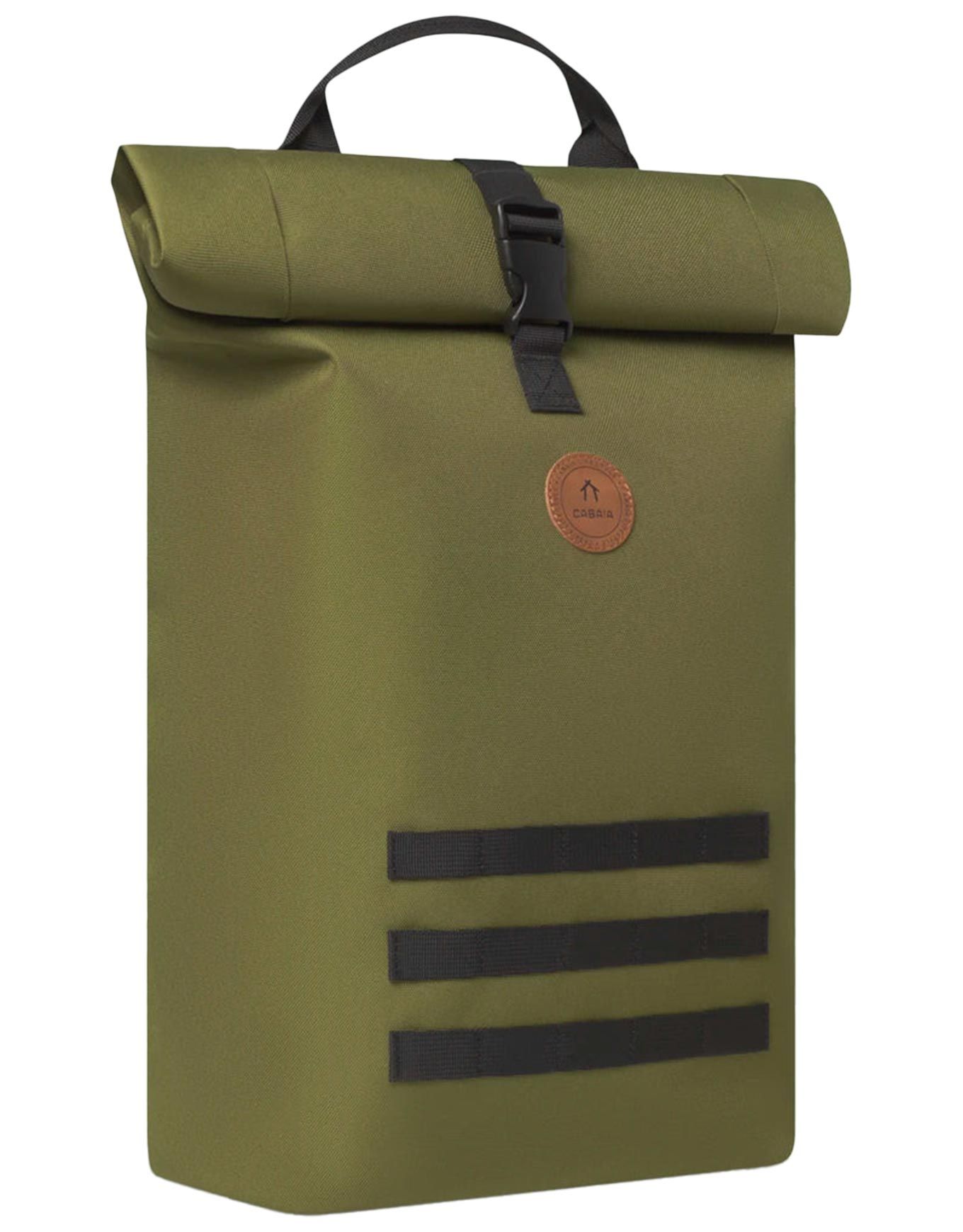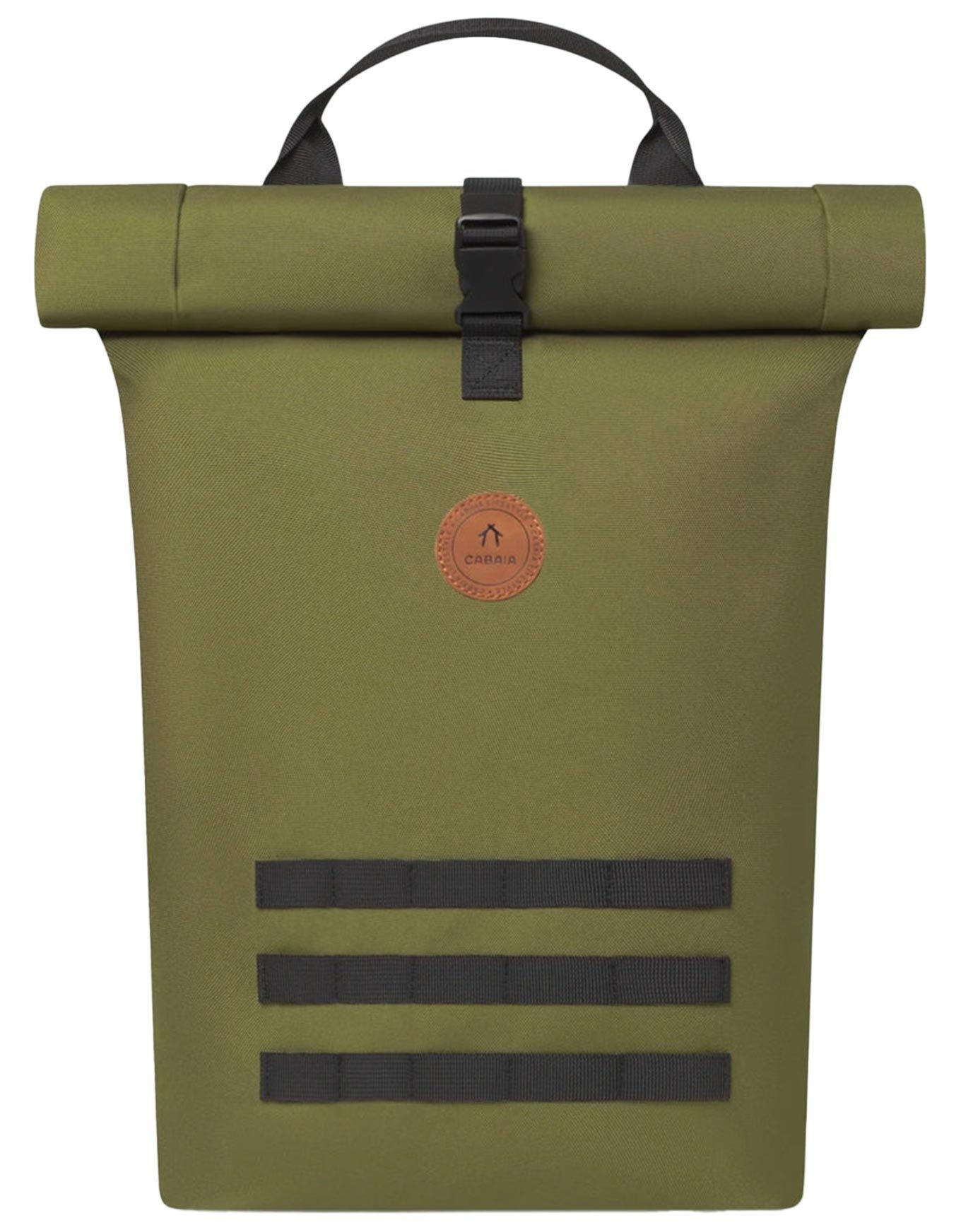 Sac à dos Starter Medium Cabaïa : fermeture roll top, compartiment ordinateur 15″, poche frontale sécurisée et système MOLLE® breveté pour organiser vos affaires en voyage ou au quotidien.