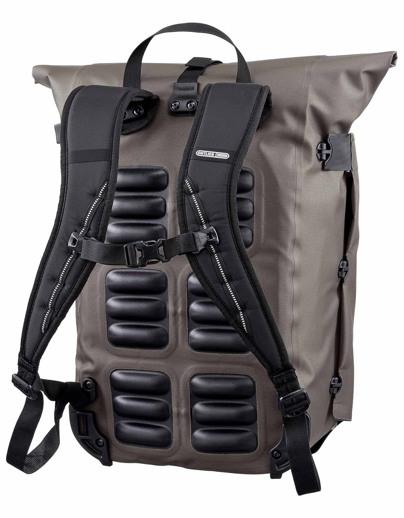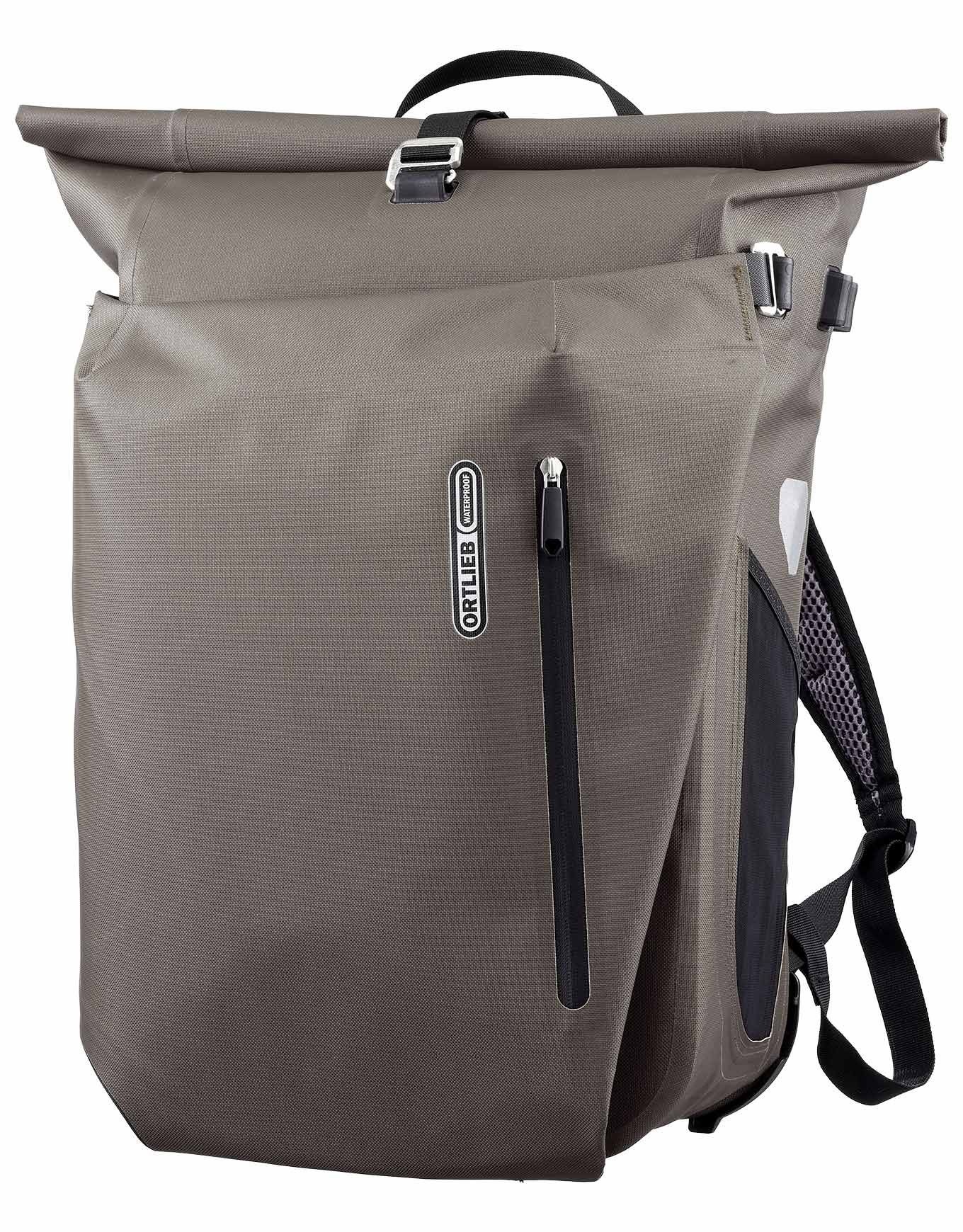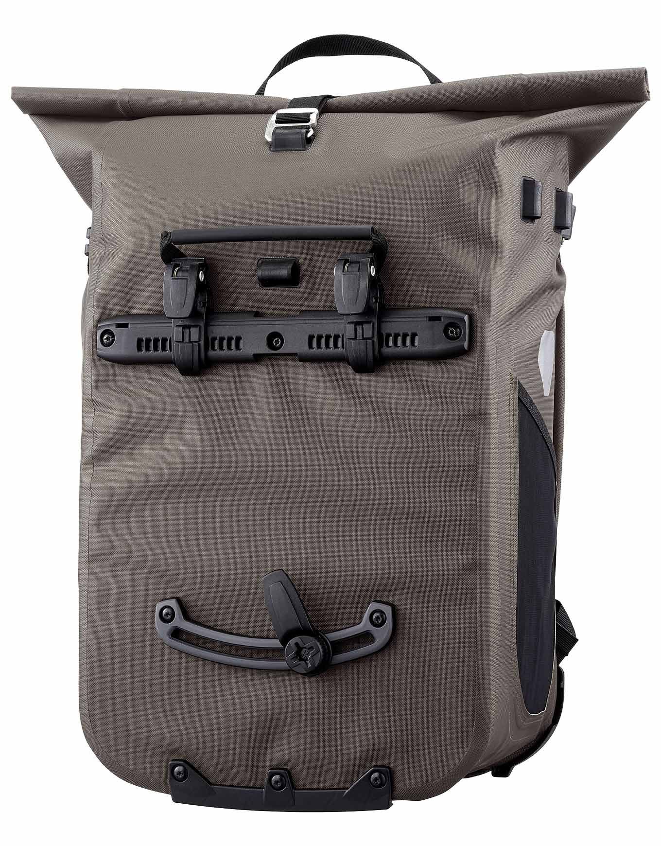 Sacoche vélo Ortlieb Vario 26L Dark Sand, convertible en sac à dos étanche 26 L, système Quick-Lock 2.1, compartiment roll-top avec rembourrage PC, éléments réfléchissants.