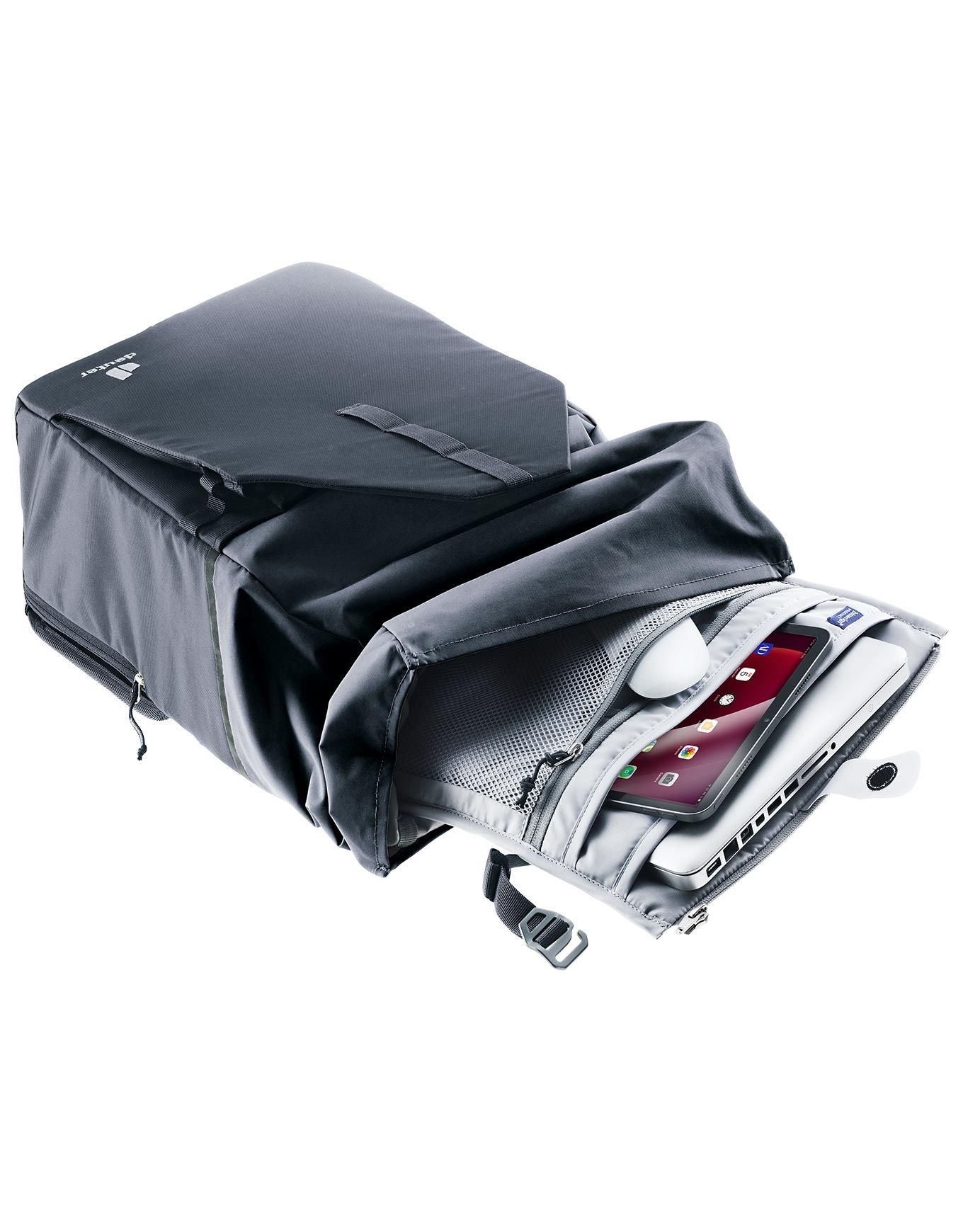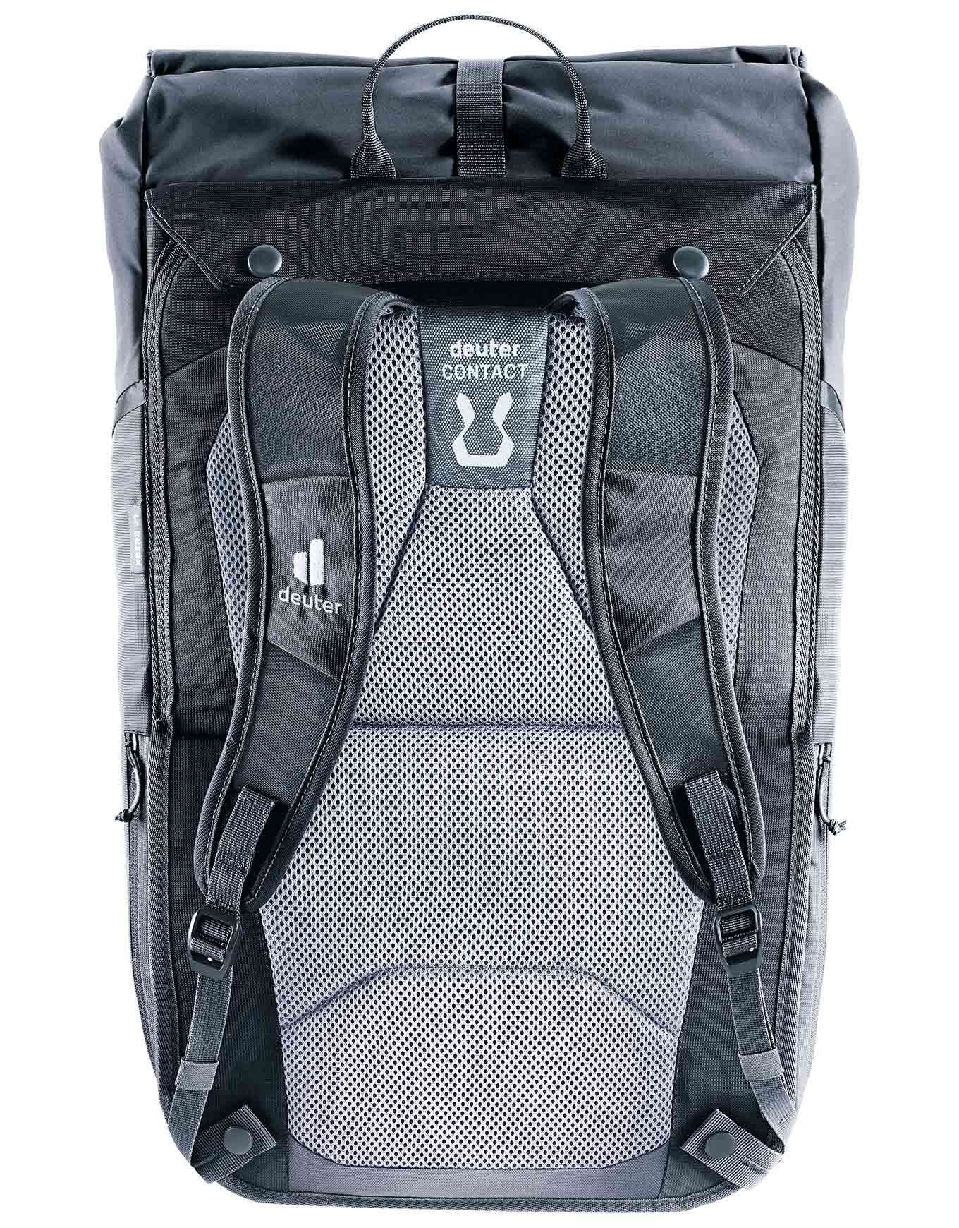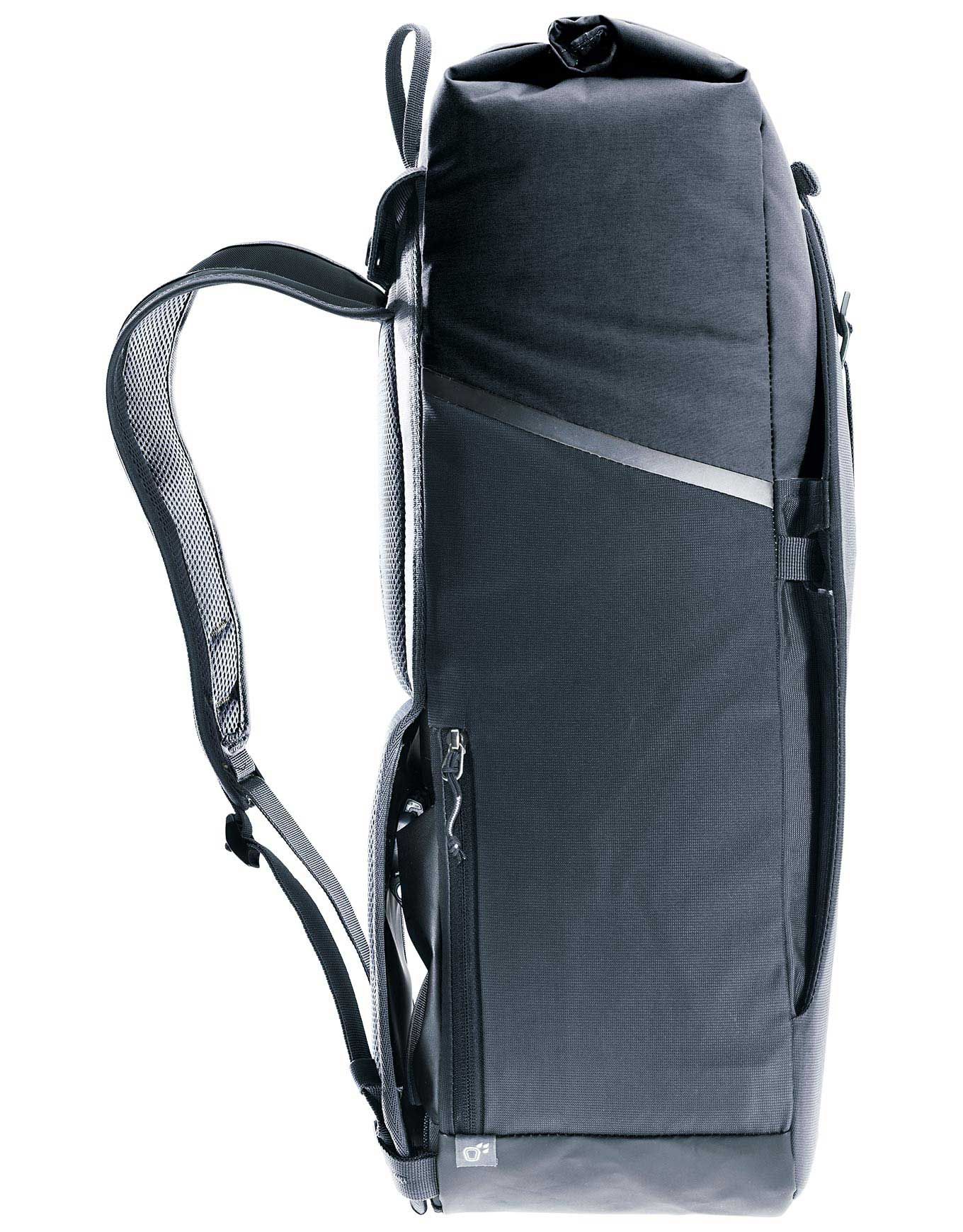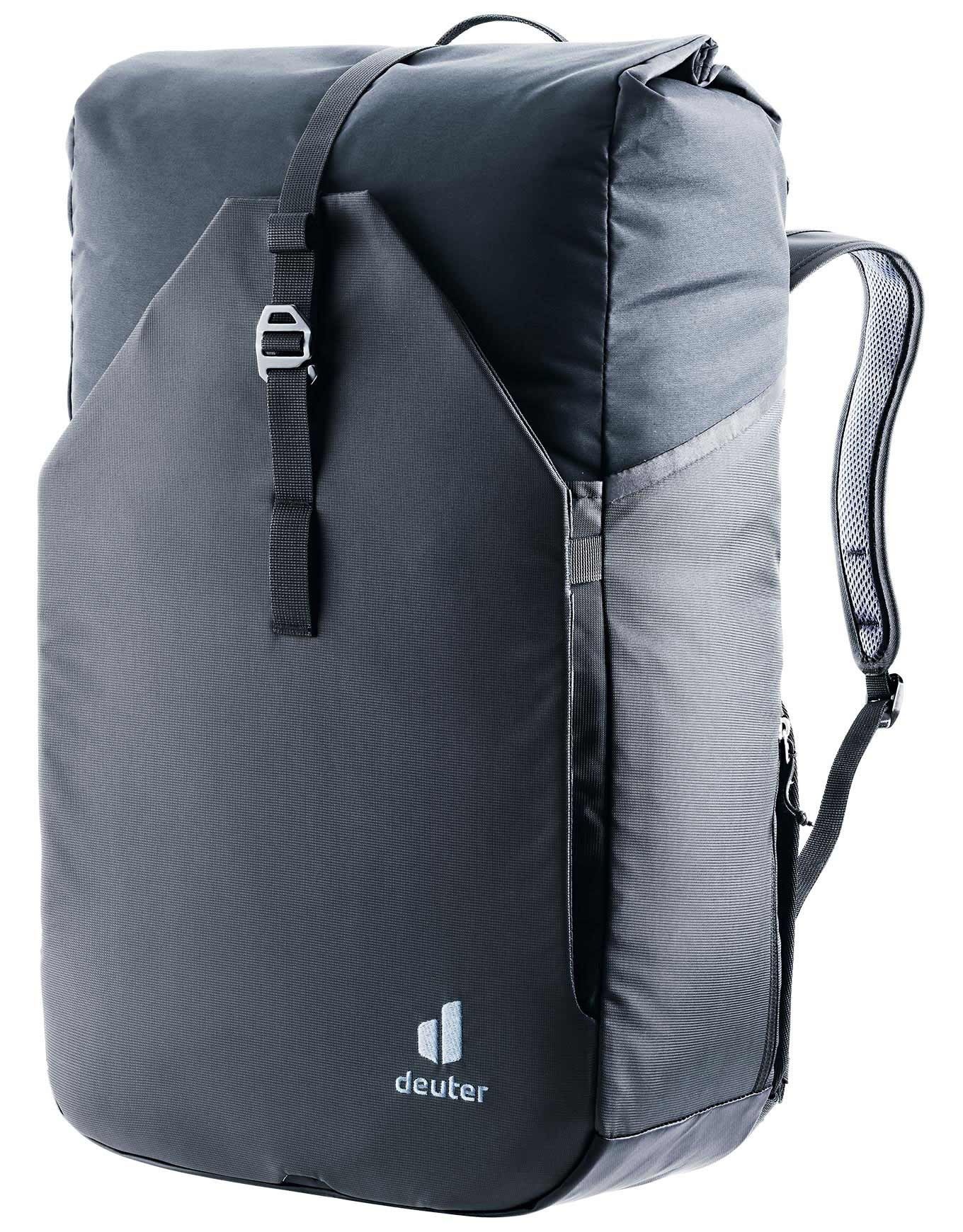 Sac à dos Deuter Xberg 25 Black, 25 L extensible à 30 L, conçu pour les trajets quotidiens à vélo ou à pied. Système dorsal Contact aéré, fixation BagFix pour porte-bagage, poche organiseuse amovible, éléments réfléchissants et housse de pluie incluse.