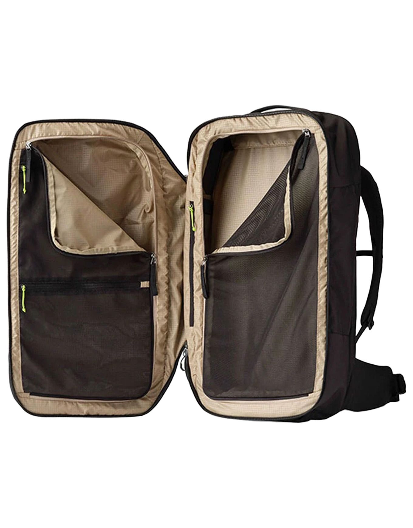 - Le grand sac 50 L s’ouvre en valise et offre deux compartiments séparés avec un panneau avant rembourré et protégé
