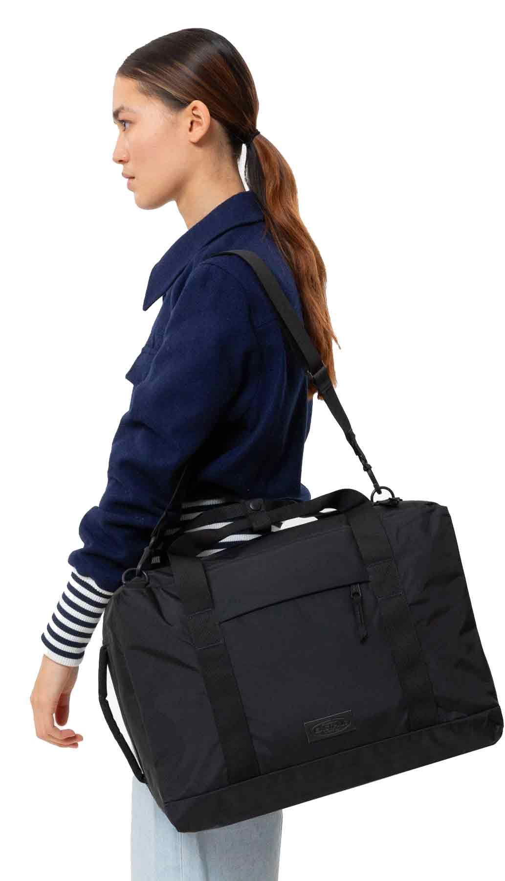 Eastpak Multipak F CNNCT Black est un sac de voyage duffel 31 l polyvalent, doté de compartiments 2 niveaux, d’un organiseur 16 » et de bandoulières escamotables pour un portage modulable au quotidien.