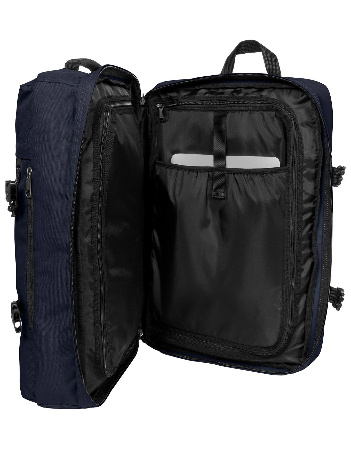 Sac de voyage Eastpak Travelpack Ultra Marine 42 L en nylon 100 % léger et résistant à l’eau, avec compartiments U-zip, housse 17″ et bretelles rétractables pour un portage confortable en week-end.