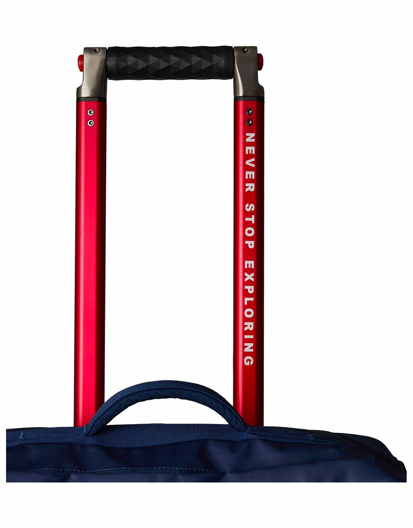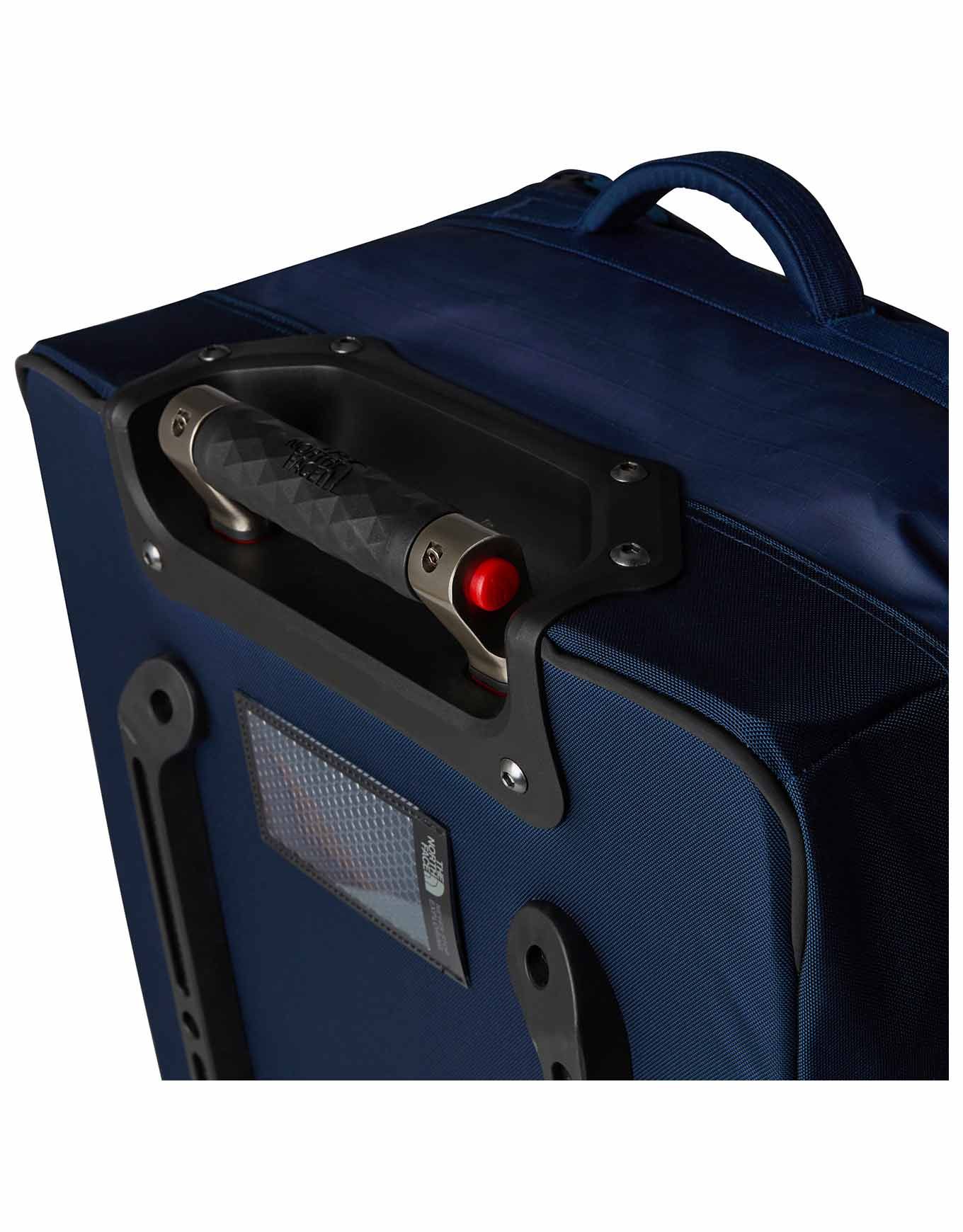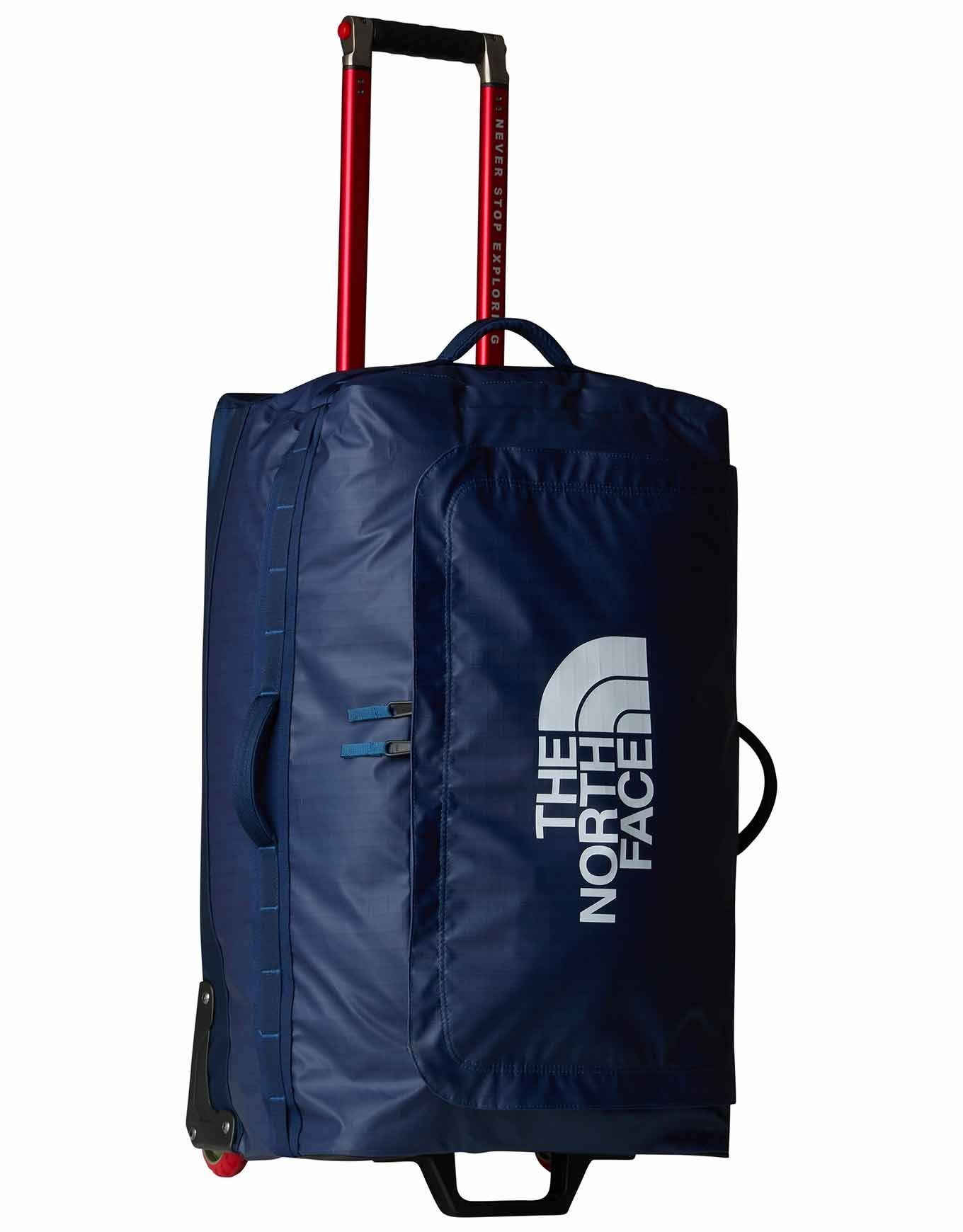 The North Face Base Camp Voyager 29 Roller Shady Blue Summit Navy est une valise 94 L en matière recyclée durable, munie de grandes roulettes gravel-ready, poignées latérales et renforts anti-chocs pour un transport sûr des voyageurs aventuriers.