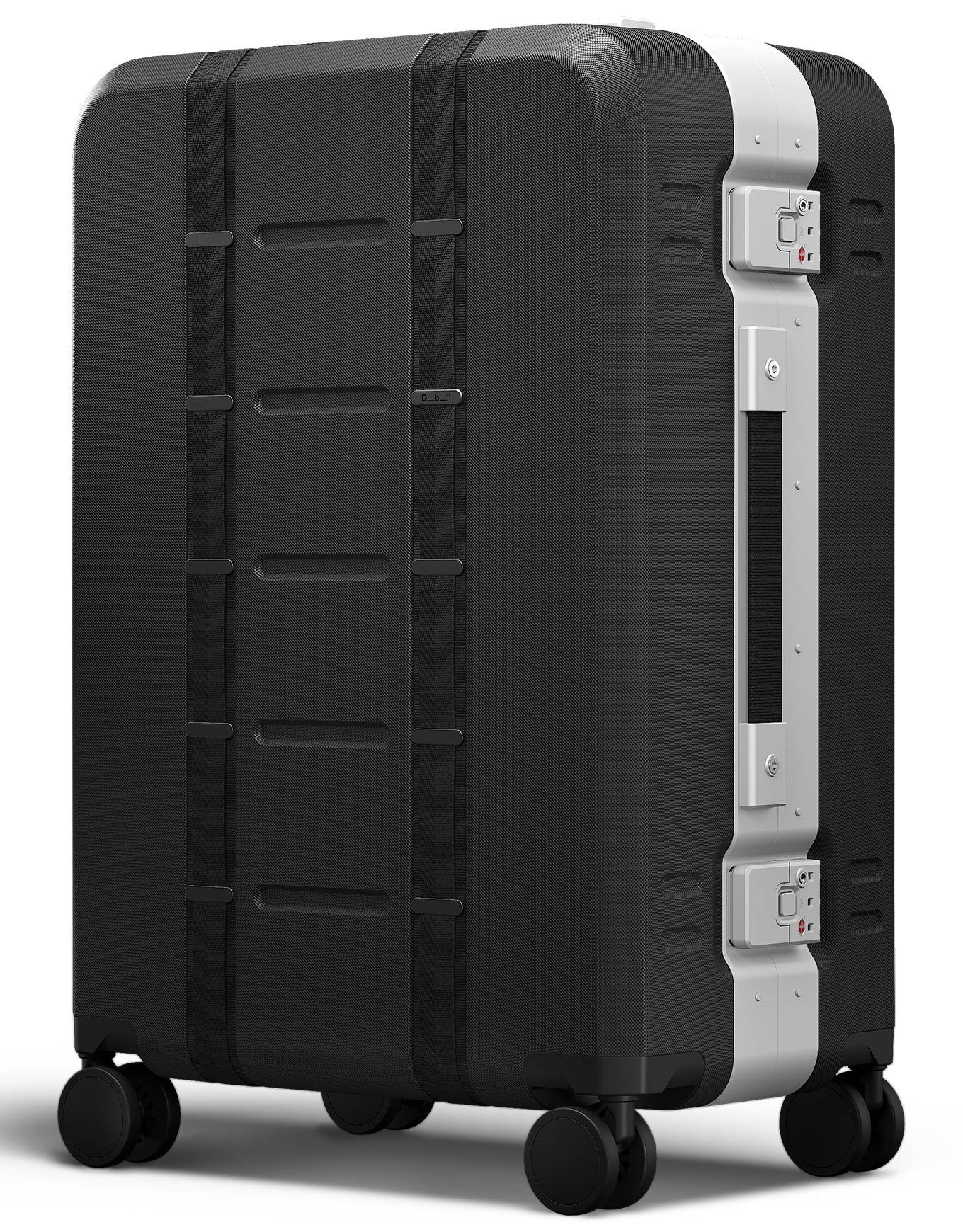 Db Ramverk Pro Check-In Luggage Medium est une valise rigide 67 L en polycarbonate et aluminium, avec serrures TSA et roues Hinomoto 360° silencieuses.