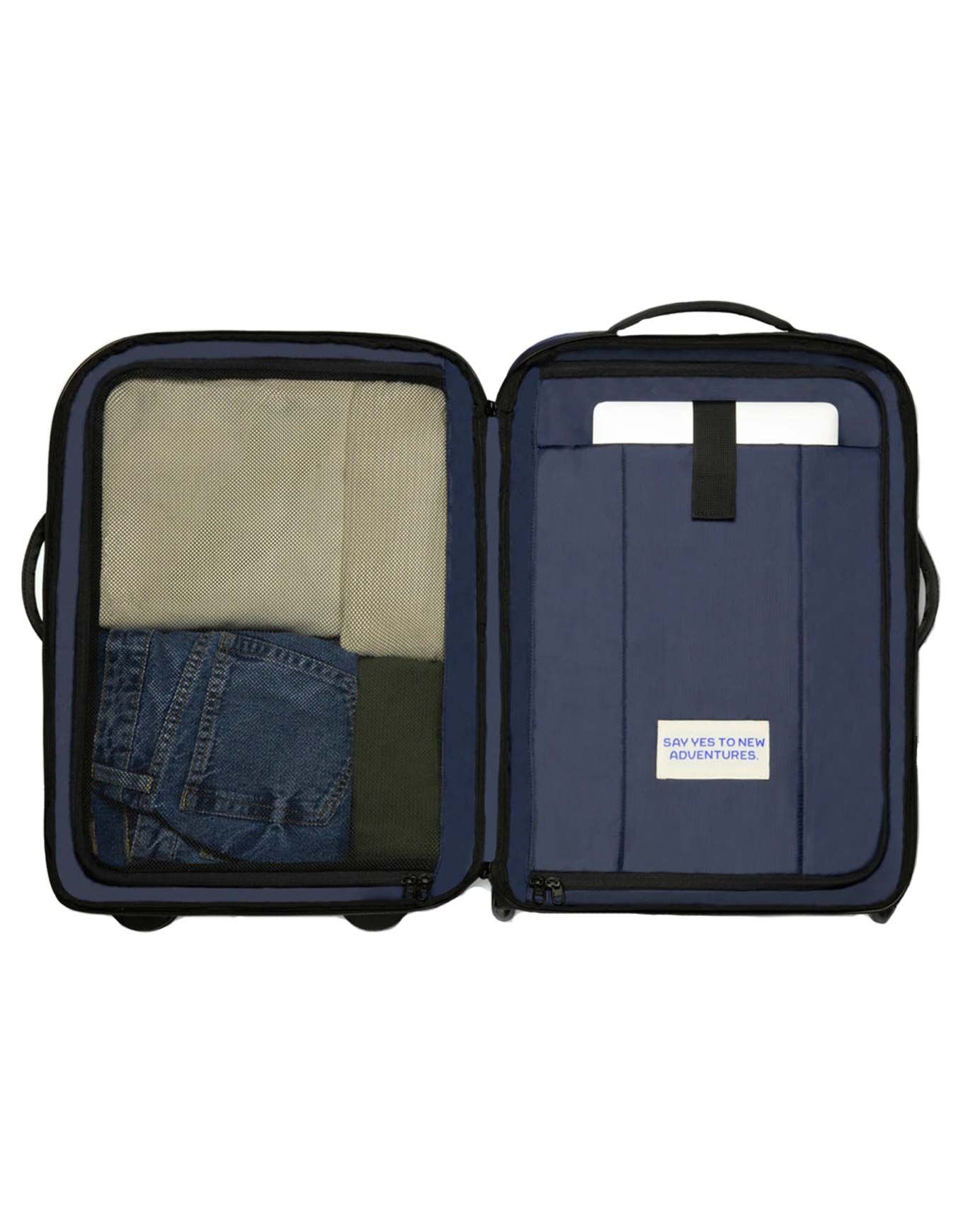 La Soft Suitcase Small Cabaïa est une valise cabine convertible en sac à dos, dotée de bretelles intégrées, d’une poche rembourrée pour ordinateur, d’un système TSA et d’attaches MOLLE® pour personnalisation.