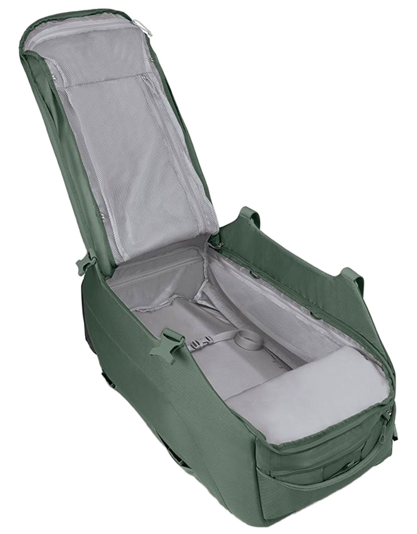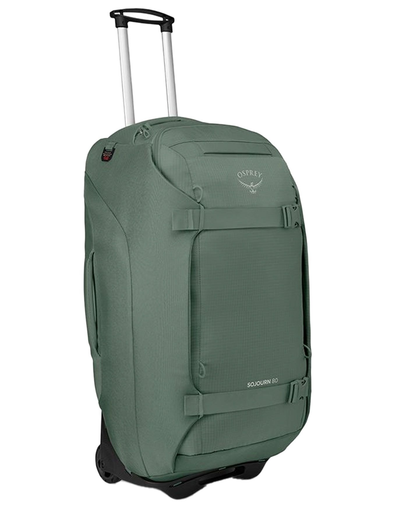 Sac de voyage Osprey Sojourn 80 Koseret Green convertible roulettes/sac à dos, dos suspendu AntiGravity™ ajustable, châssis HighRoad™ ABS, poches organisatrices, compatible Daylite.
