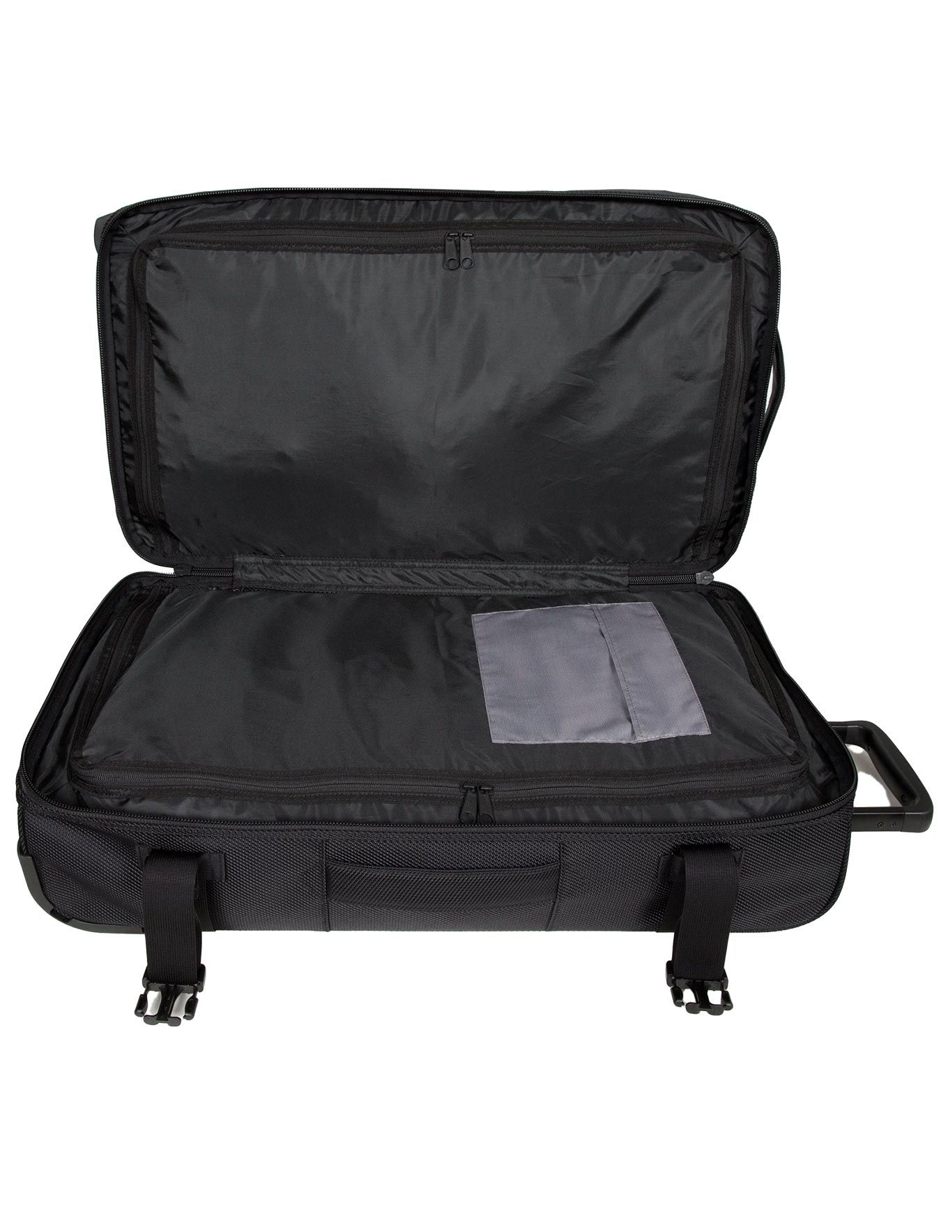Valise Eastpak Tranverz CNNCT M Coat 78 L en 100 % polyester vegan, 2 compartiments, poche frontale, roulettes fluides, poignée télescopique, cadenas TSA intégré.