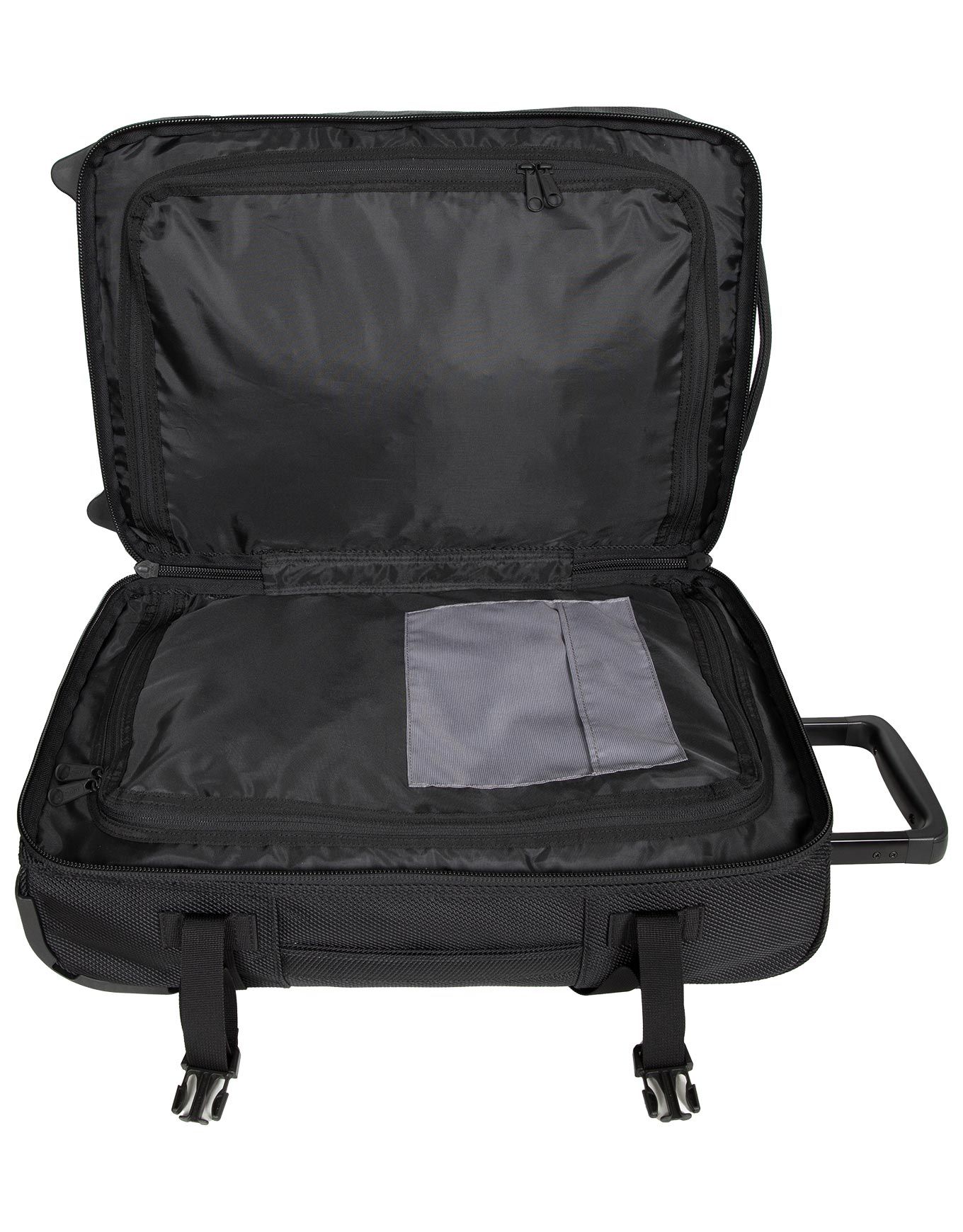 La valise cabine Eastpak Tranverz CNNCT S Coat combine deux compartiments, roulettes fluides et cadenas TSA pour un voyage sûr et organisé. Son polyester 100 % vegan, ses sangles de compression et sa poignée télescopique assurent légèreté, tenue et maniabilité.
