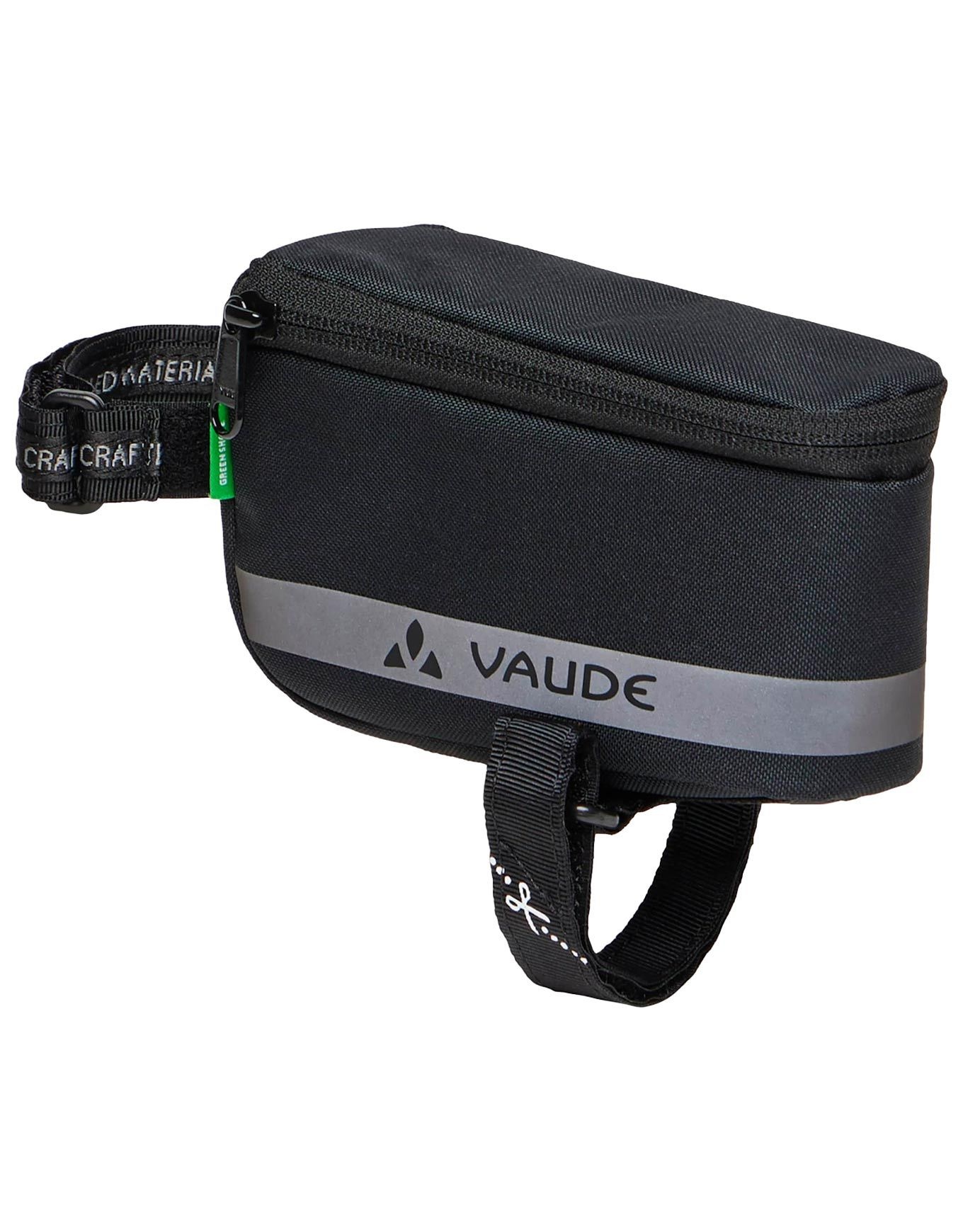 Signée Vaude, la Top Tube Bag Black constitue une sacoche de cadre vélo. Grâce à des bandes velcro, elle s’attache sans effort sur le tube supérieur : discrète et compacte, elle n’entravera pas votre sortie. Avec 0,5 L de capacité, l’essentiel trouve sa place : démonte-pneus, outils, mini-pompe, chambre à air, multitool ou effets personnels de petite taille. La forme fuselée épouse parfaitement le cadre pour une aérodynamique optimale et un accès instantané. La sécurité est renforcée par des détails réfléchissants latéraux qui améliorent la visibilité. Le traitement Eco Finish du tissu offre une protection efficace contre l’eau et la saleté : cet apprêt déperlant écologique, exempt de PFC, s’inscrit dans une démarche de durabilité. Vous disposez ainsi, à portée de main, du matériel nécessaire pour faire face à une crevaison. Découvrir les catégories associées Sacoches vélo Vélotaf Bagagerie vélo