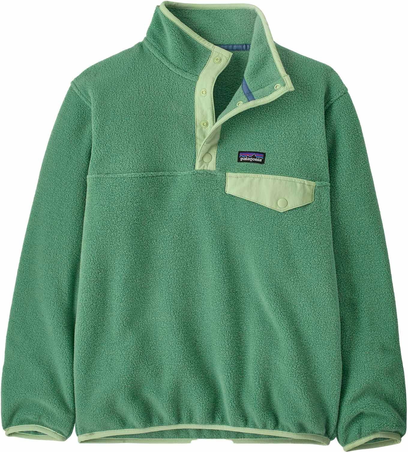 La polaire à capuche LW Synch Snap-T P/O Elwood Green de Patagonia en polaire recyclée garde votre enfant bien au chaud grâce à son col montant boutonné et sa capuche intégrée, tandis que la poche poitrine vintage affine le style des mini-explorateurs.