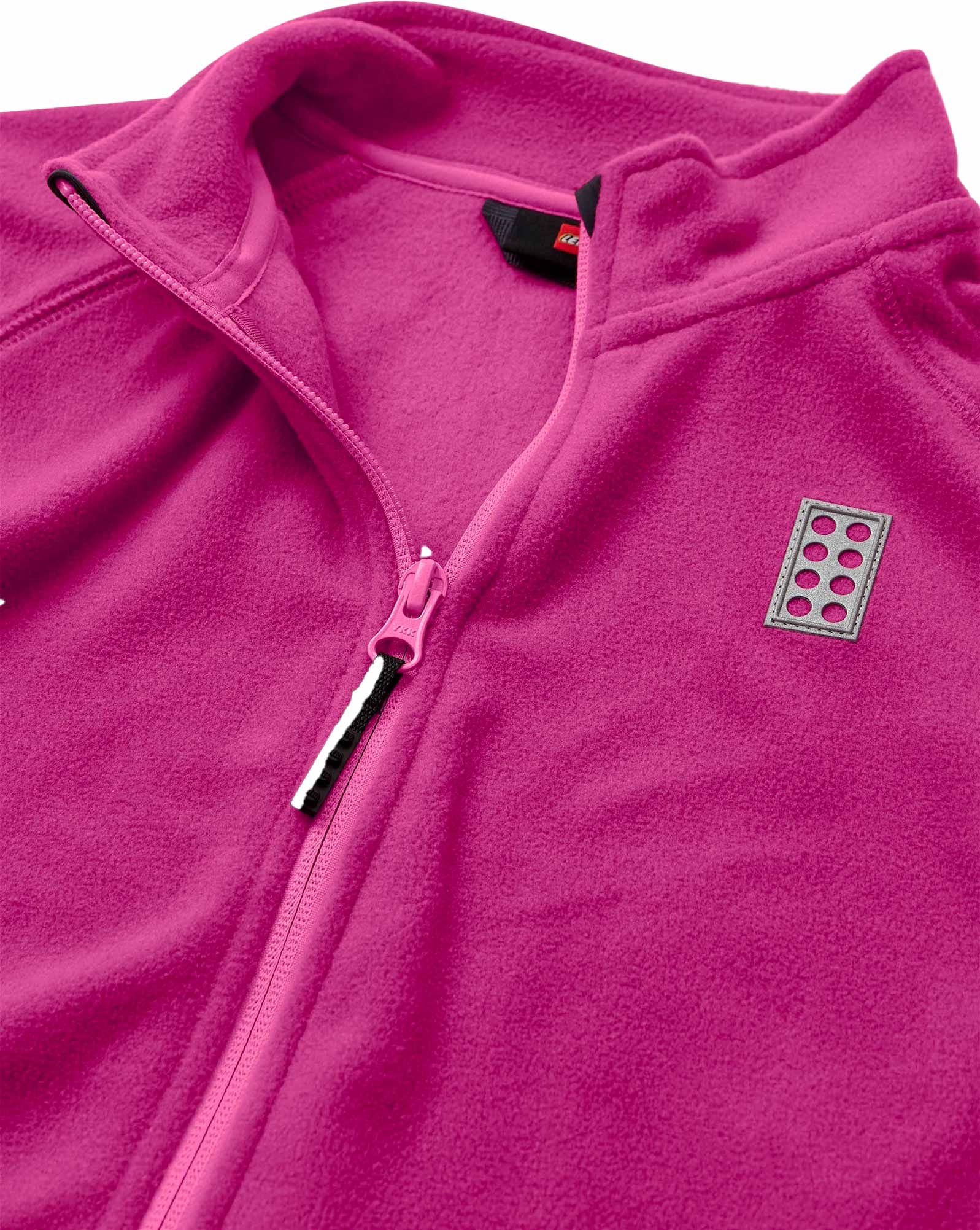 Lego Wear Sinclair 703 Cardigan polaire enfant fuchsia glisse vite sous une combinaison grâce à sa fermeture zippée, sèche rapidement en polyester et garde votre enfant bien visible avec son badge réfléchissant.