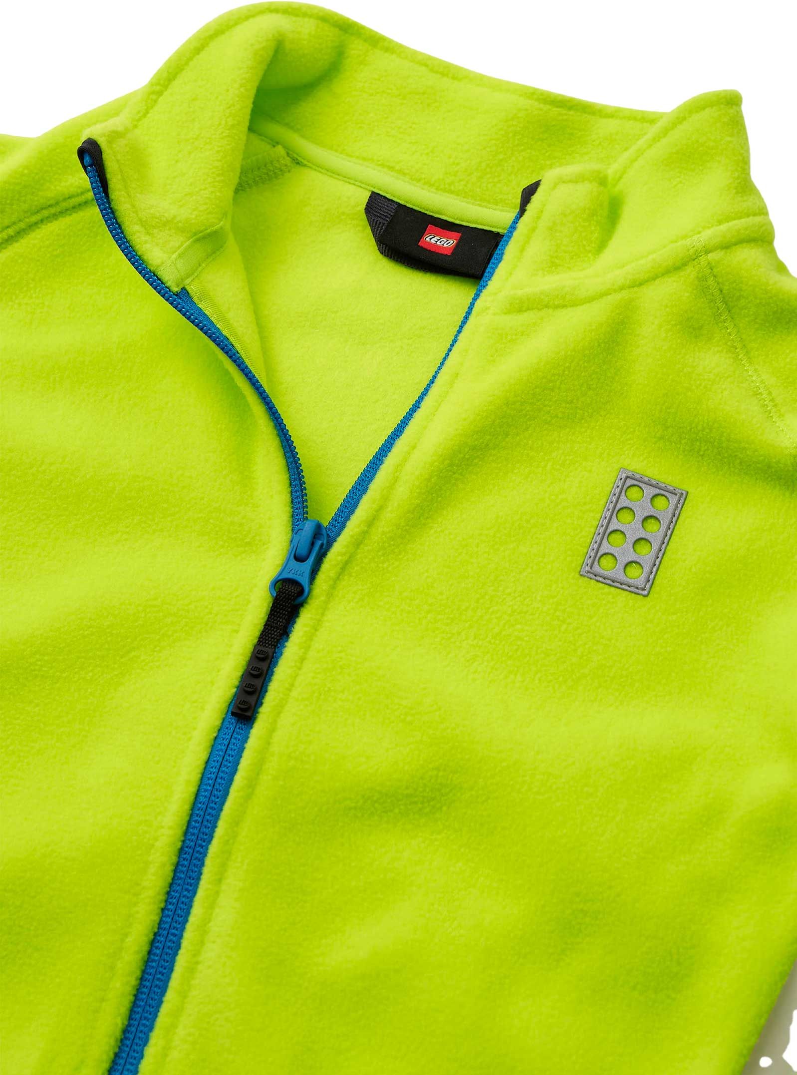 Lego Wear Sinclair 703 Cardigan polaire enfant lime glisse facilement sous une combinaison ou se porte seule : fermeture zippée, protège-menton, séchage rapide polyester, badge réfléchissant pour rester visible sur les pistes.