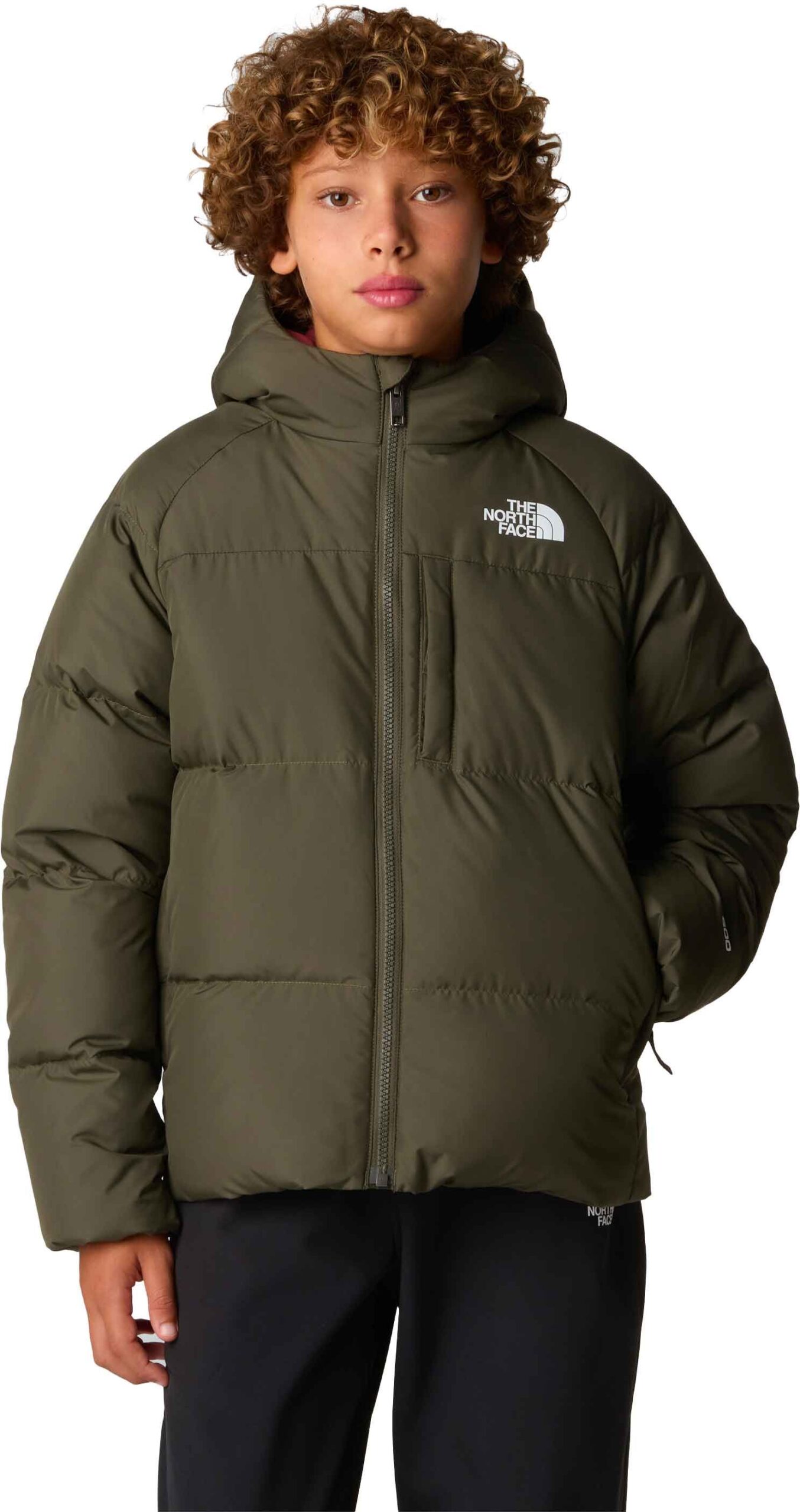 La veste The North Face North Down Hooded Jacket New Taupe Green garçon, isolée en duvet et traitée déperlant durable, offre chaleur, sécheresse et protection vent grâce à sa capuche et ses trois poches zippées.