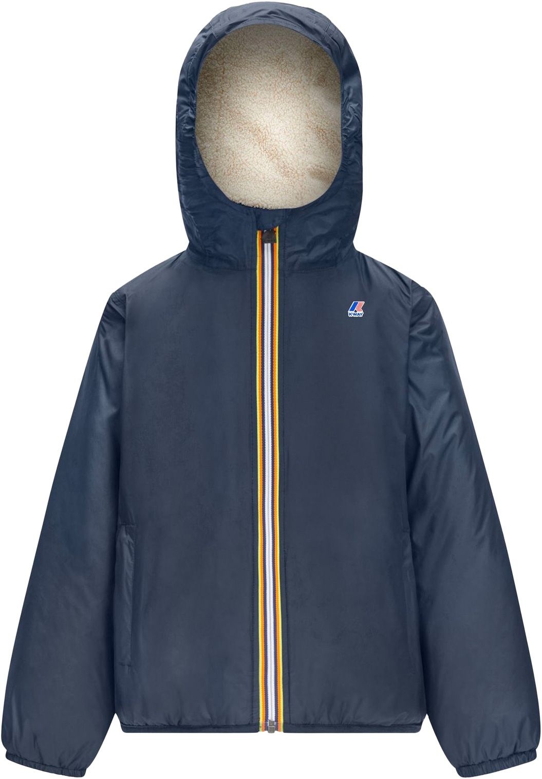 Veste enfant K-Way Le Vrai 4.0 Claude Orsetto, coupe-vent imperméable ripstop, coutures thermocollées, isolation synthétique et doublure orsetto pour chaleur et confort, deux poches zippées.