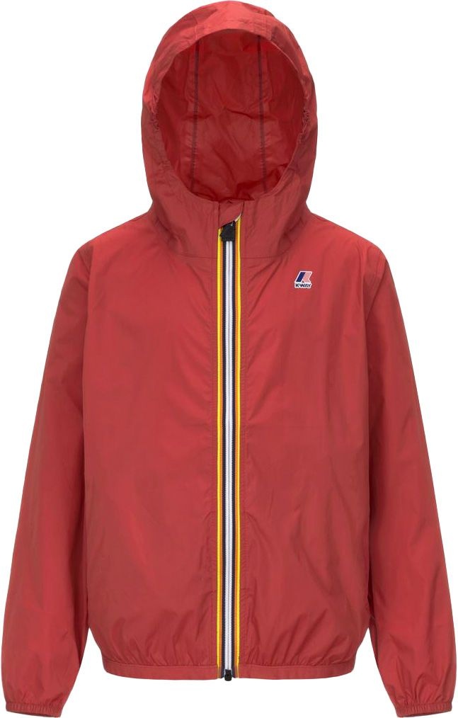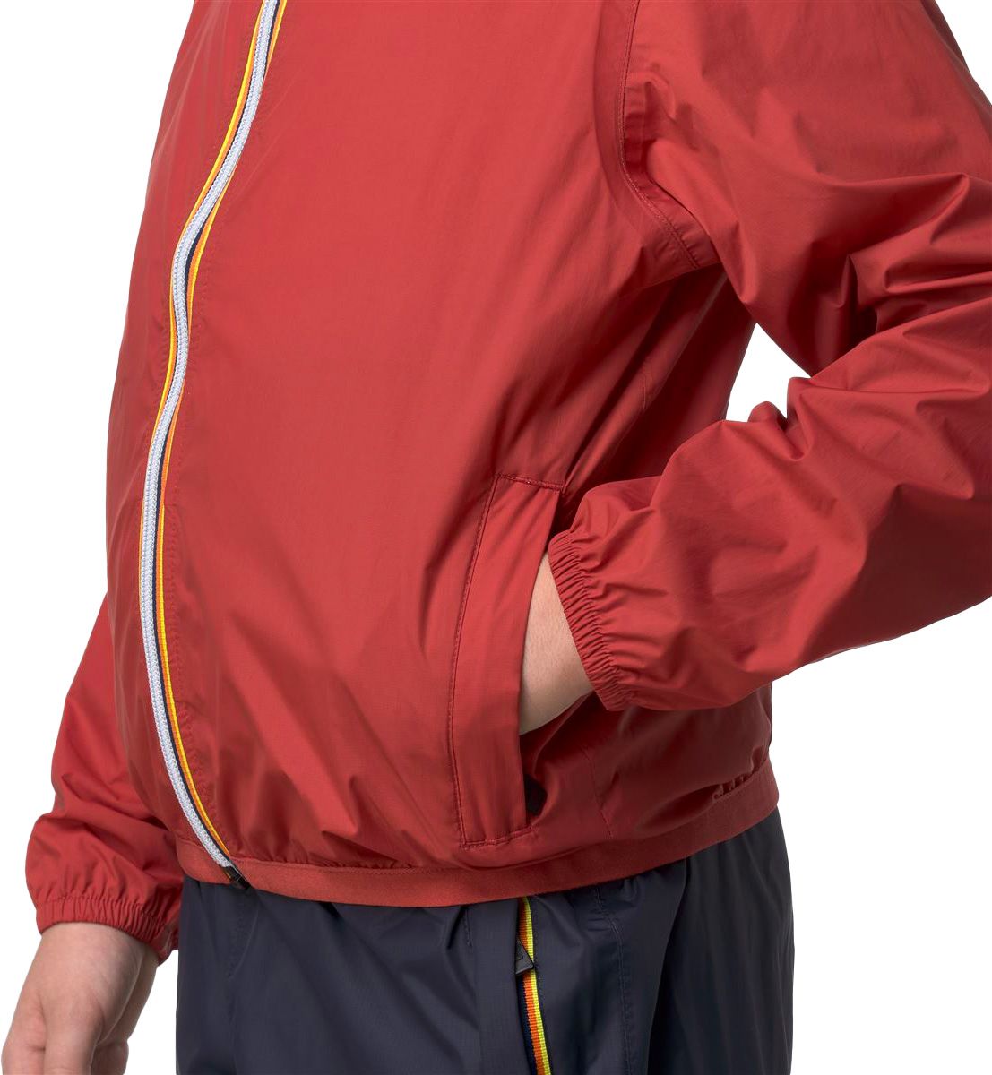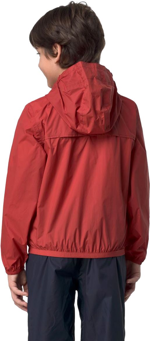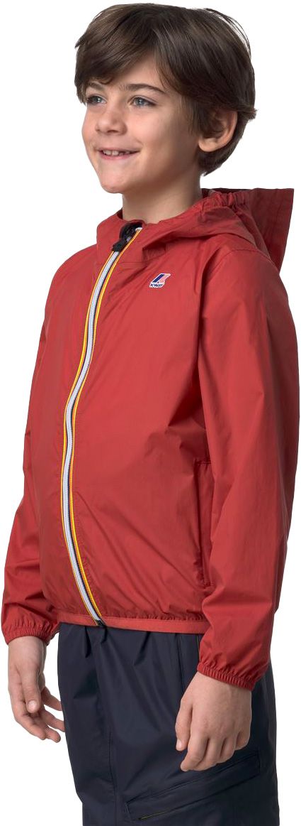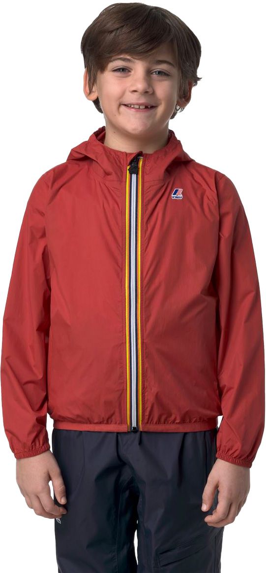 Veste coupe-vent imperméable K-Way Le Vrai 4.0 Claude Red Jasper, en ripstop respirant à coutures thermocollées, se range dans sa poche banane pour protéger les enfants de la pluie et du vent.
