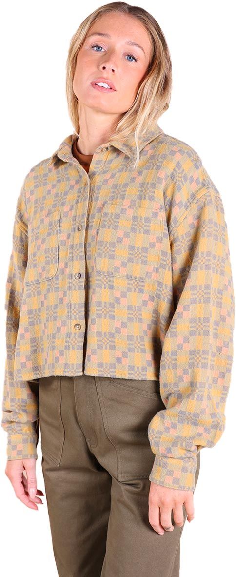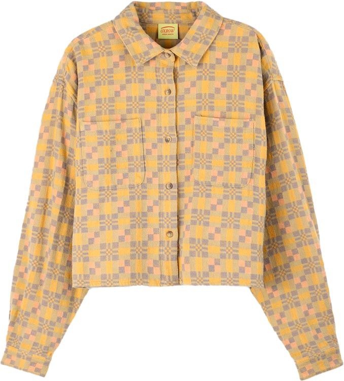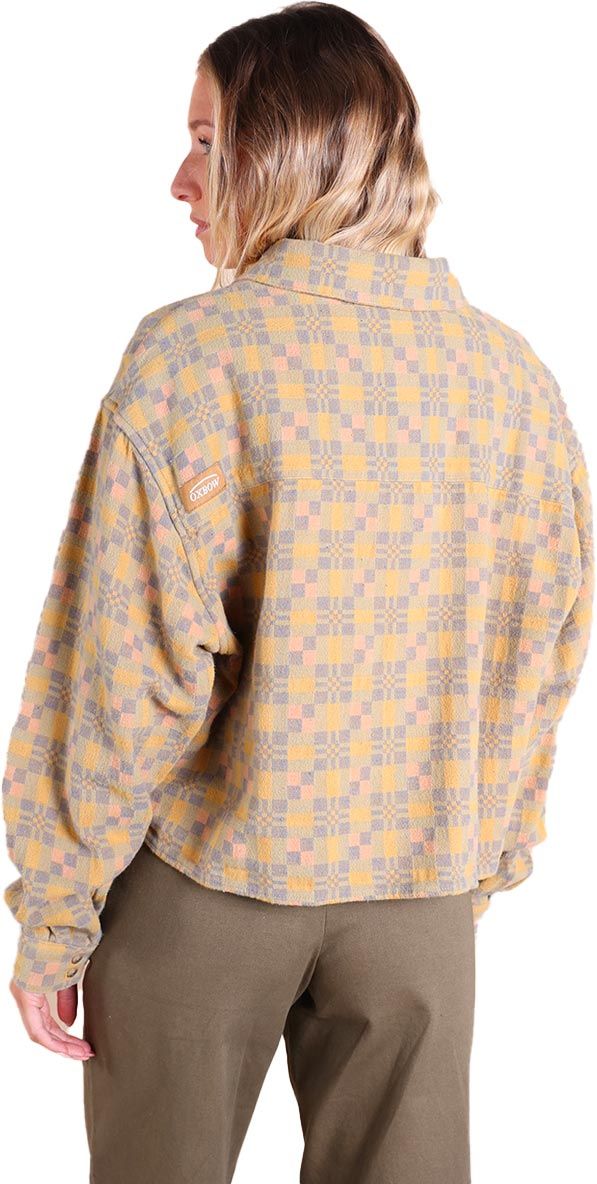 Chemise Oxbow Cotton Flannel Shirt femme en flanelle multicolore, chaude et douce, coupe courte graphique pour un style urbain décontracté.