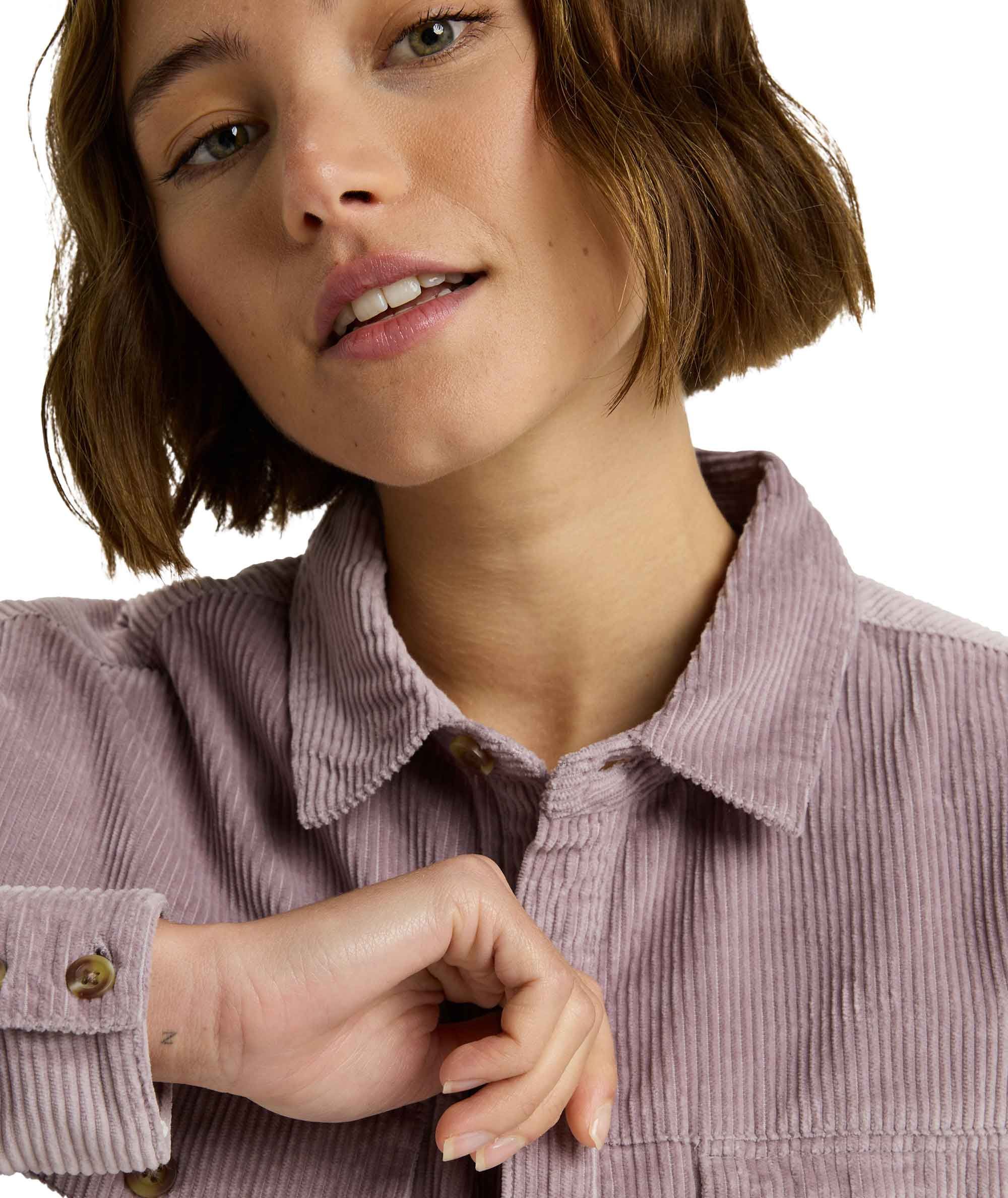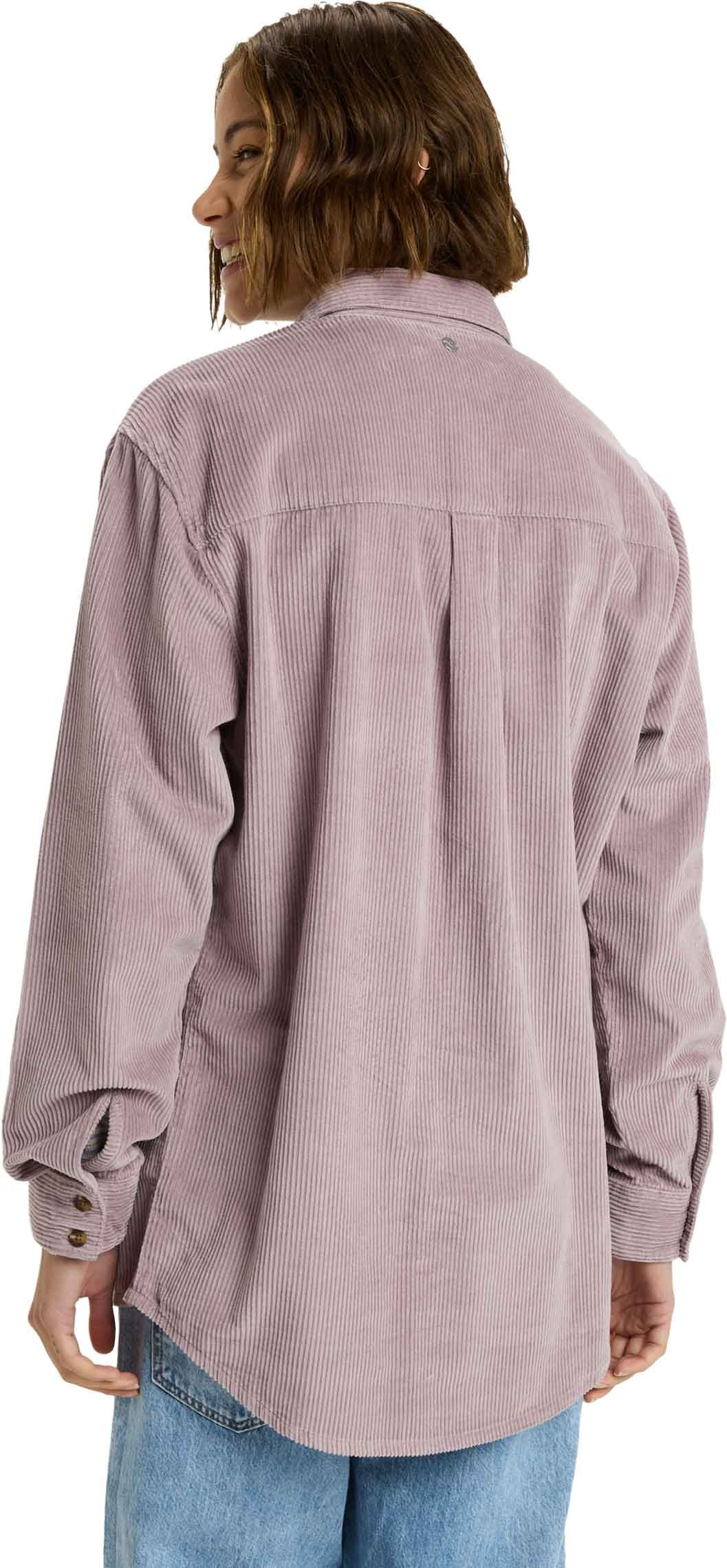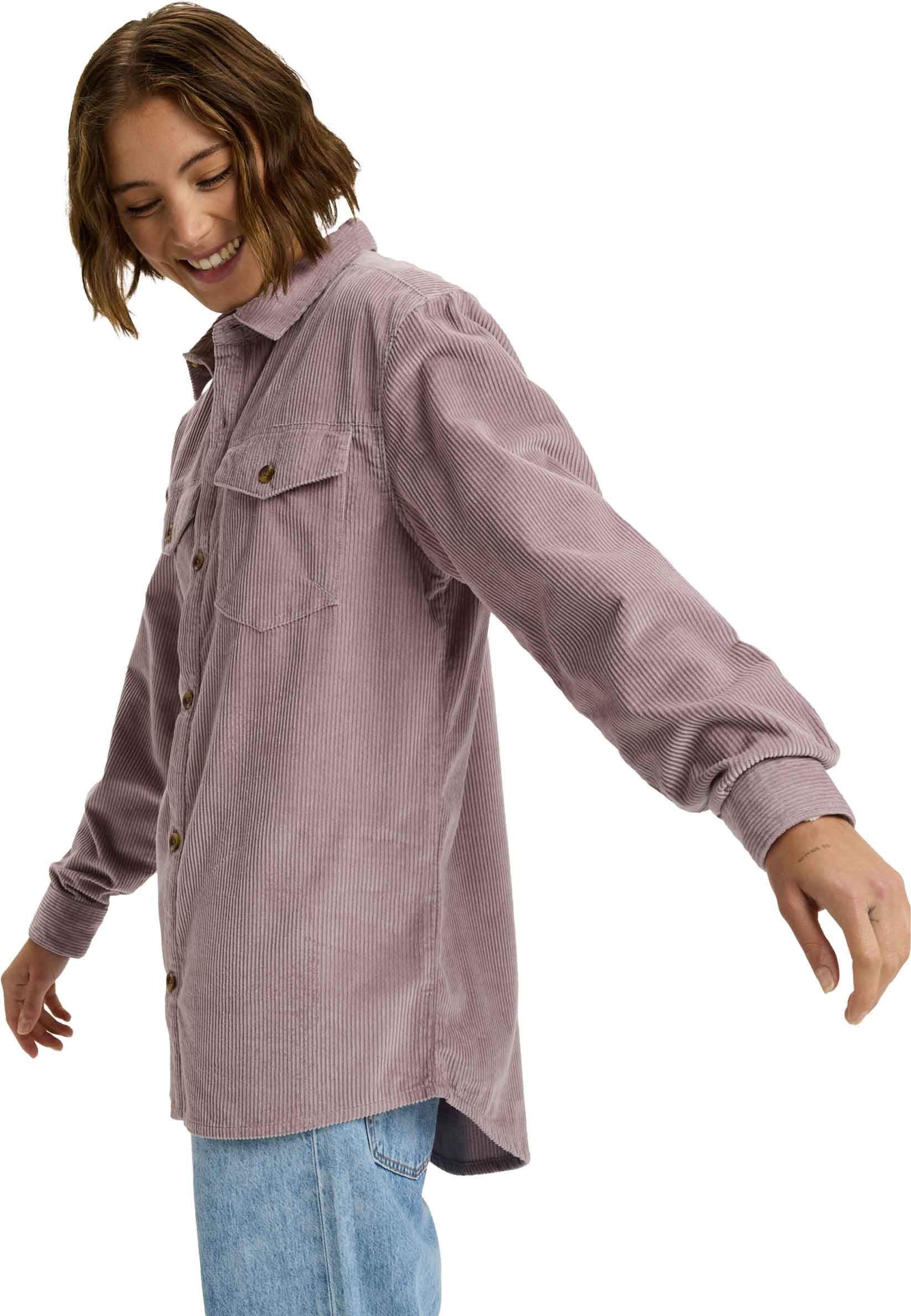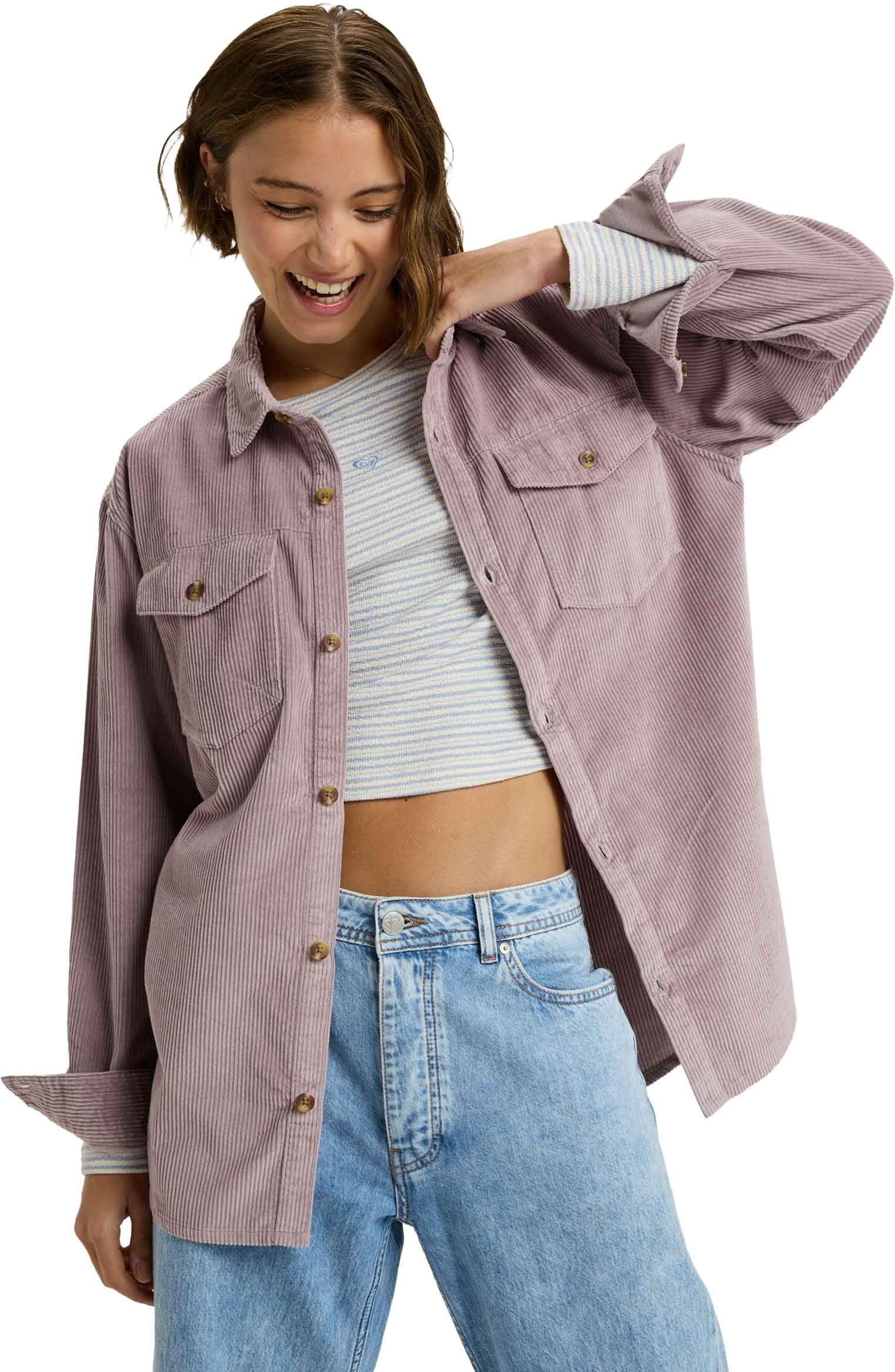 La surchemise Roxy Let It Go Cord Nirvana en velours côtelé 100 % coton épais offre chaleur et style pour l’hiver, avec un fit ample et deux poches poitrine boutonnées.