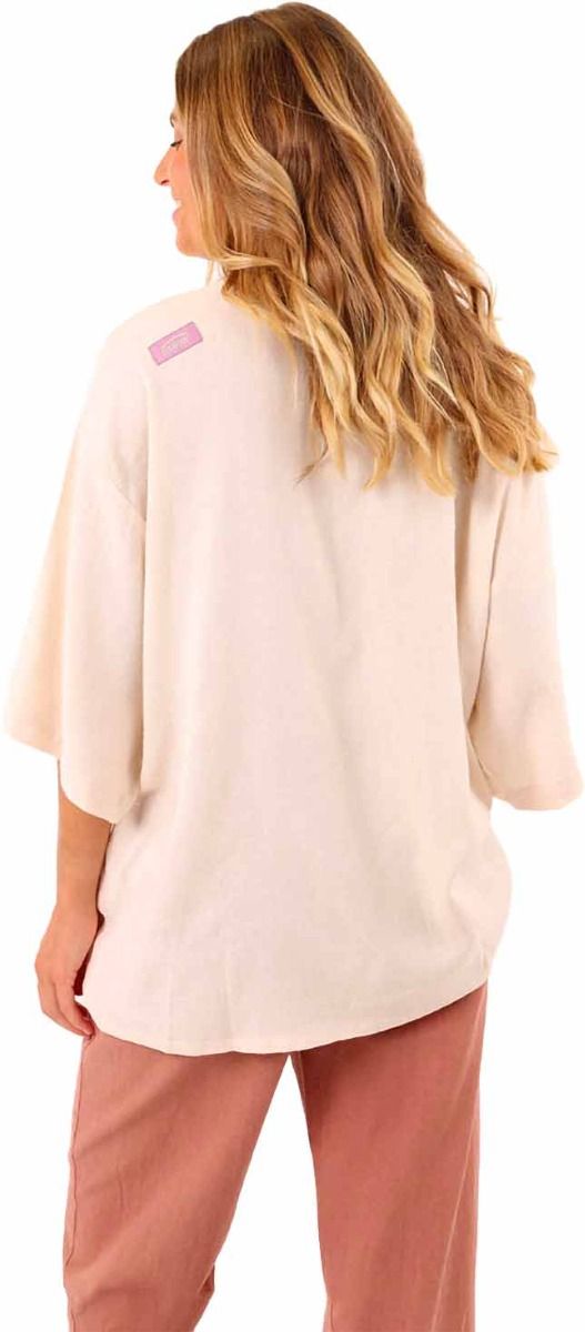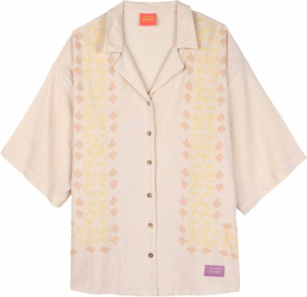 Chemise Oxbow Linen Shirt Sand manches courtes femme, mélange lin-rayonne, coupe ample et légère pour un style décontracté et vintage en été.