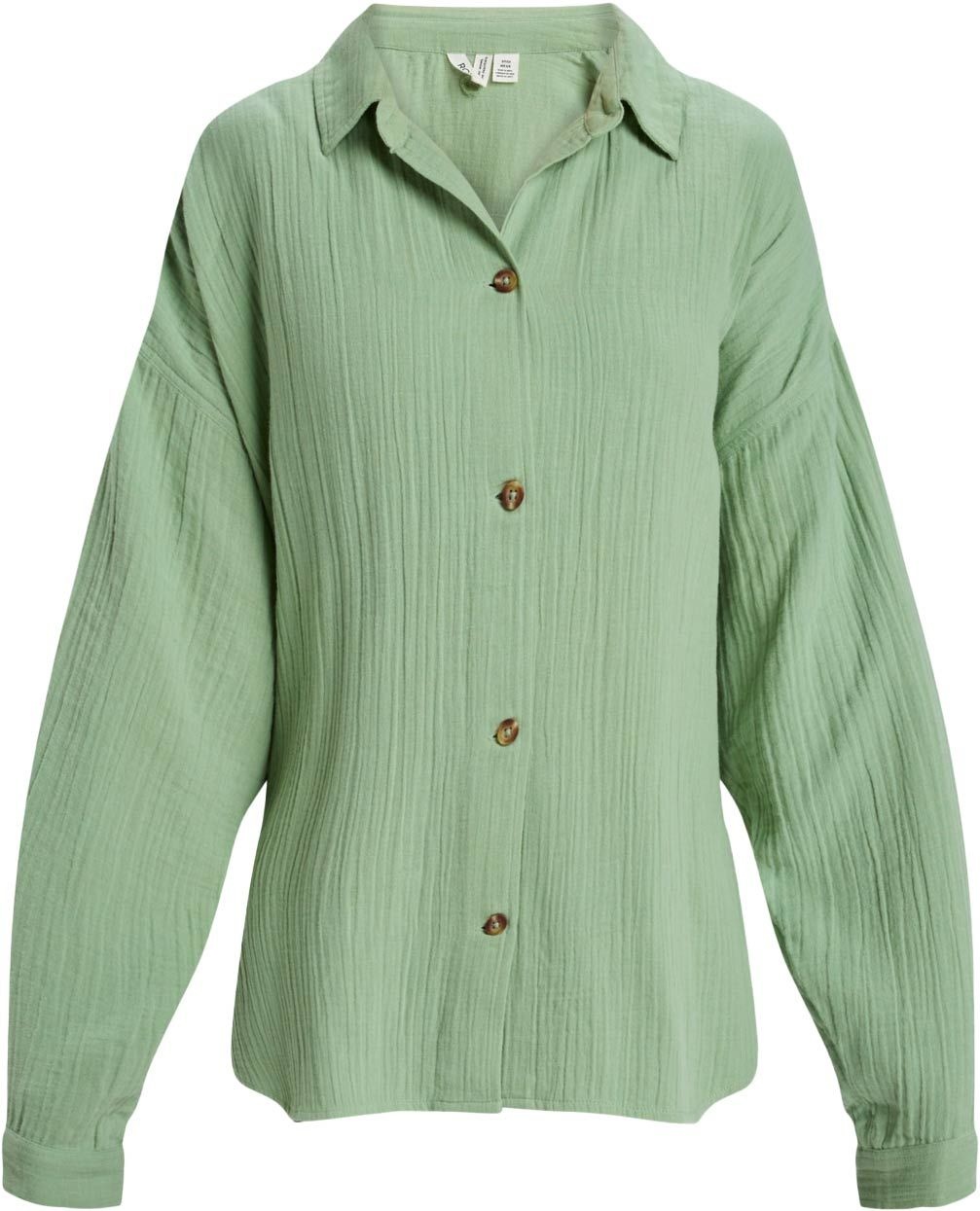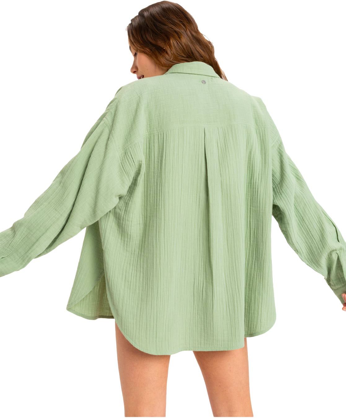 Chemise Morning Time Oversize Basil Roxy pour femme en gaze de coton biologique 100 %, coupe boyfriend et épaules tombantes pour un style décontracté respirant au quotidien.