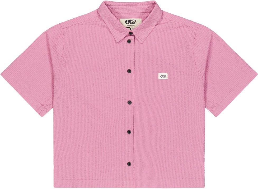 La chemise femme Picture Organic Clothing Sesia Mauve Orchid allie coupe standard, coton biologique et effet velours pour un confort rétro durable au soleil.