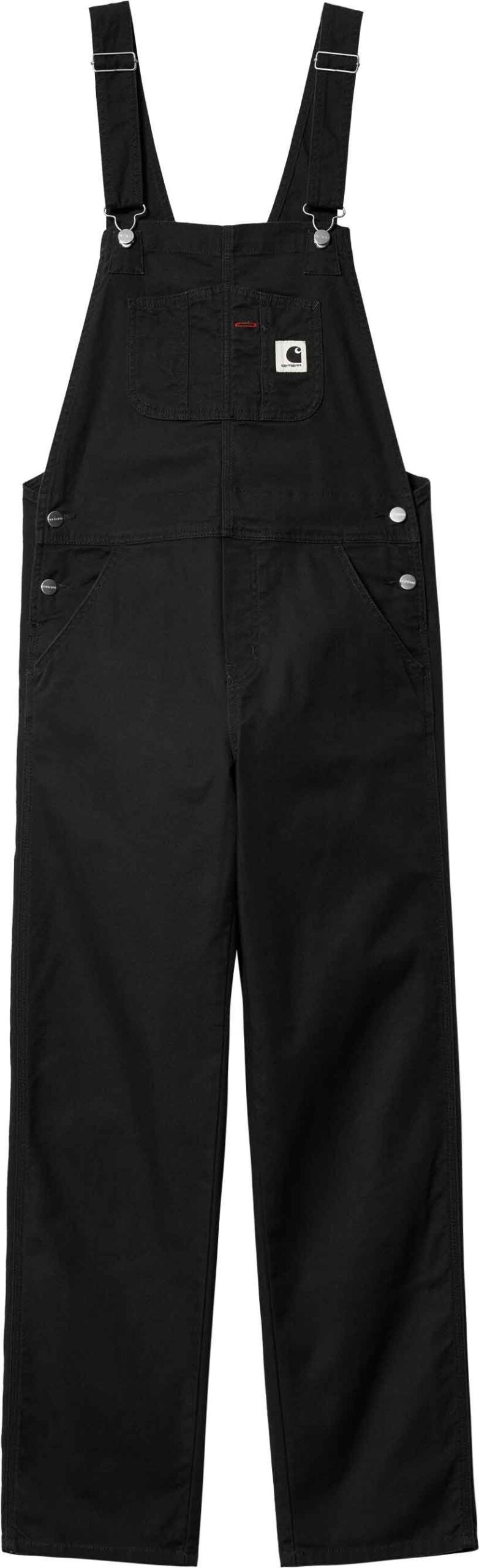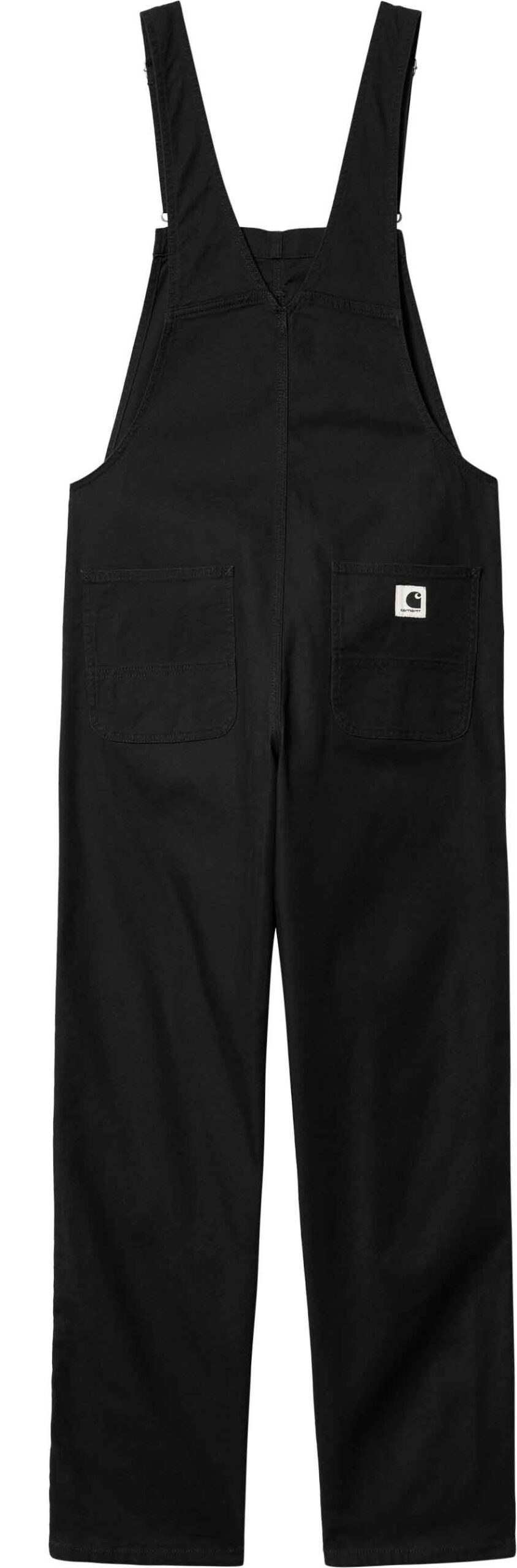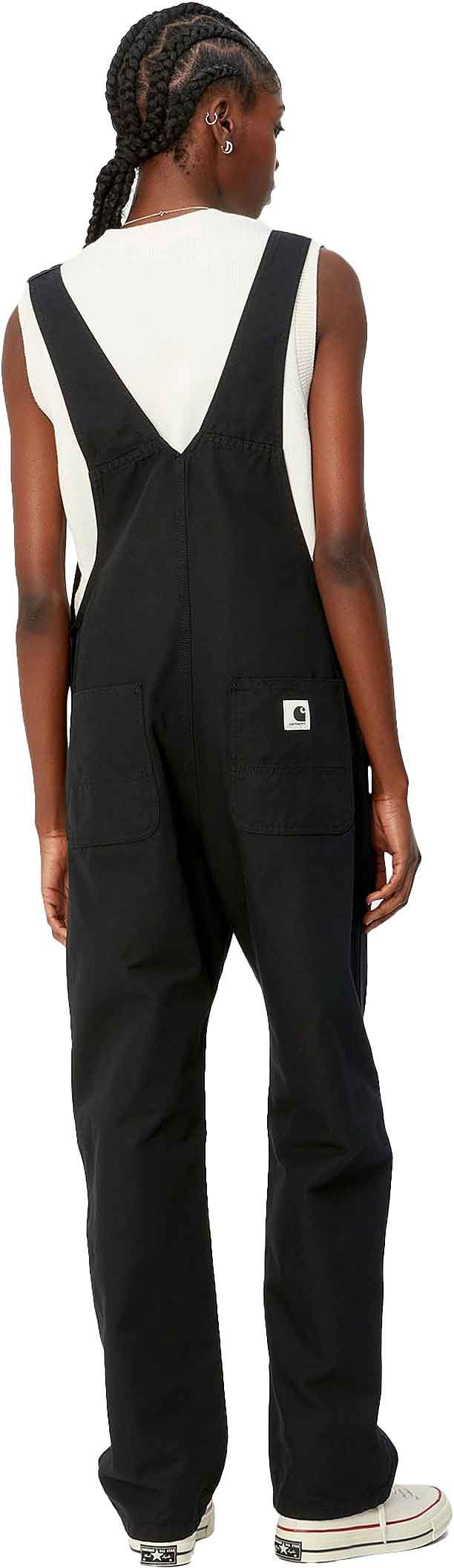 Salopette Carhartt WIP Bib Overall Straight Black femme en coton extensible, ample et confortable, avec poche poitrine plaquée et renforts aux zones sollicitées.