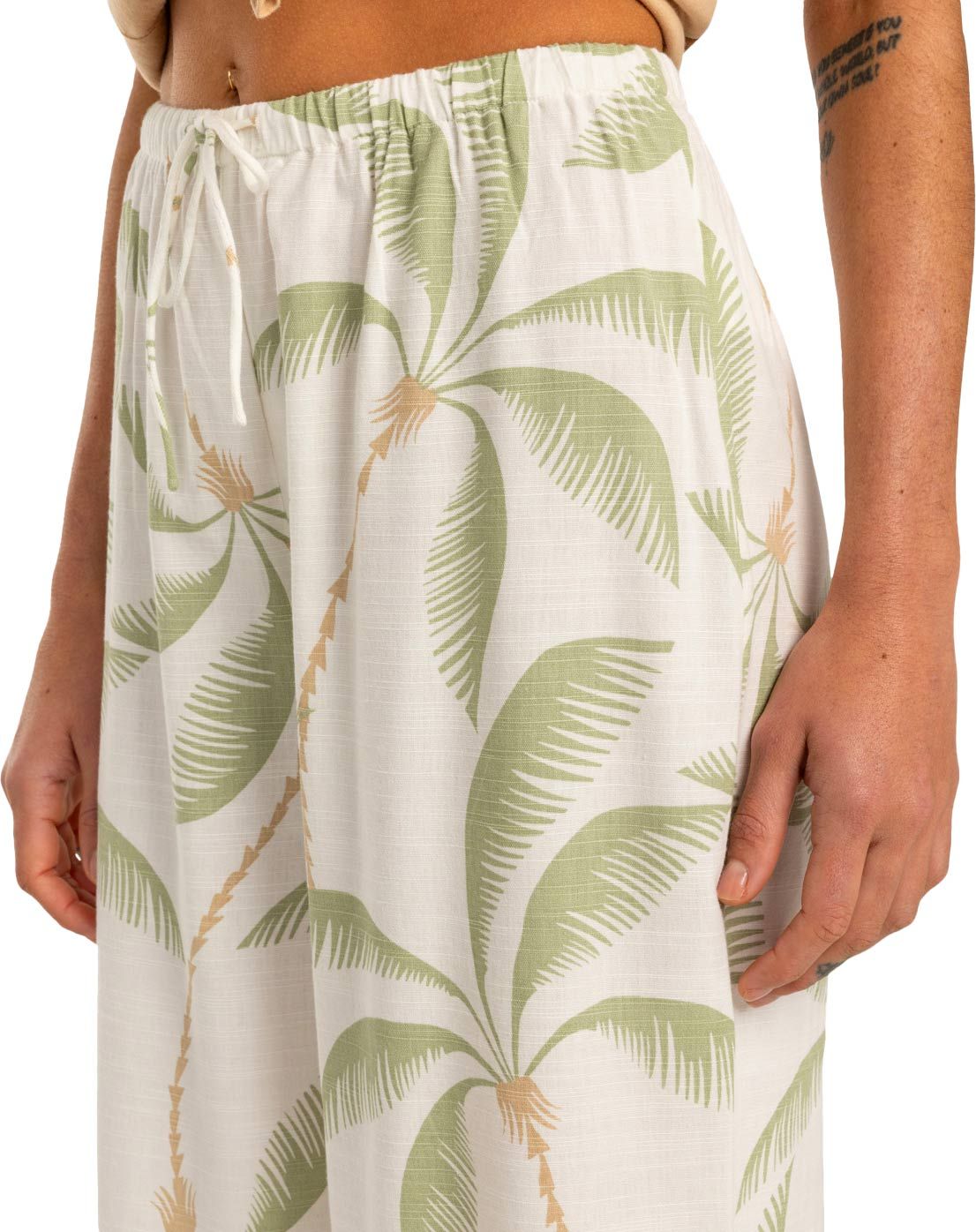 Pantalon large Beach Spirit Pant Salt Crystal en mélange viscose et coton, texture plissée fluide, taille élastiquée réglable et jambes évasées pour un style chic-décontracté.