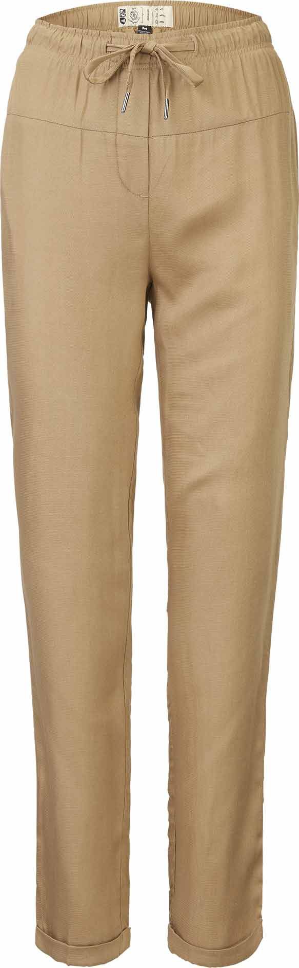 Pantalon femme Chimany Dark Stone de Picture Organic Clothing, en Tencel ultra-léger, taille élastique et cordon de serrage pour un ajustement confortable durant les longues journées d’été.