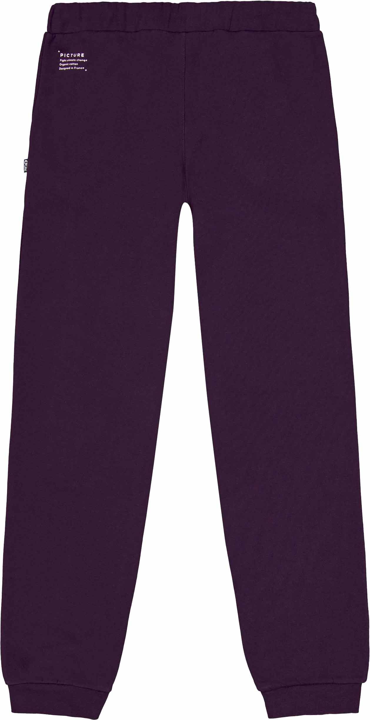 Le jogging Cocoon Potent Purple pour femme de Picture Organic Clothing allie coupe décontractée et coton biologique pour un confort doux au quotidien ou en voyage.