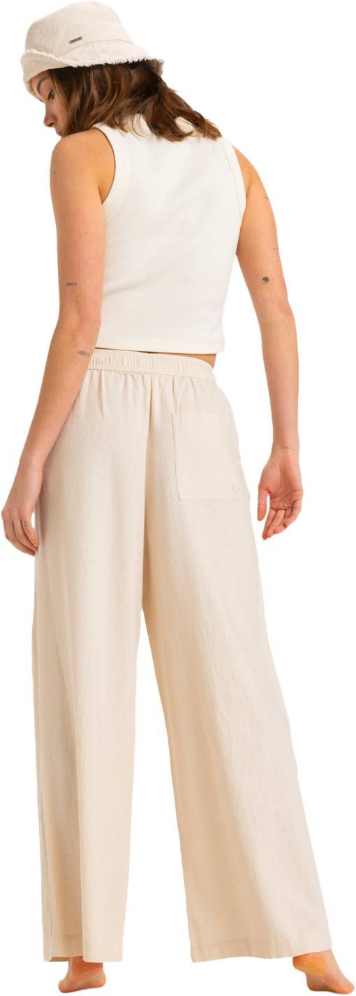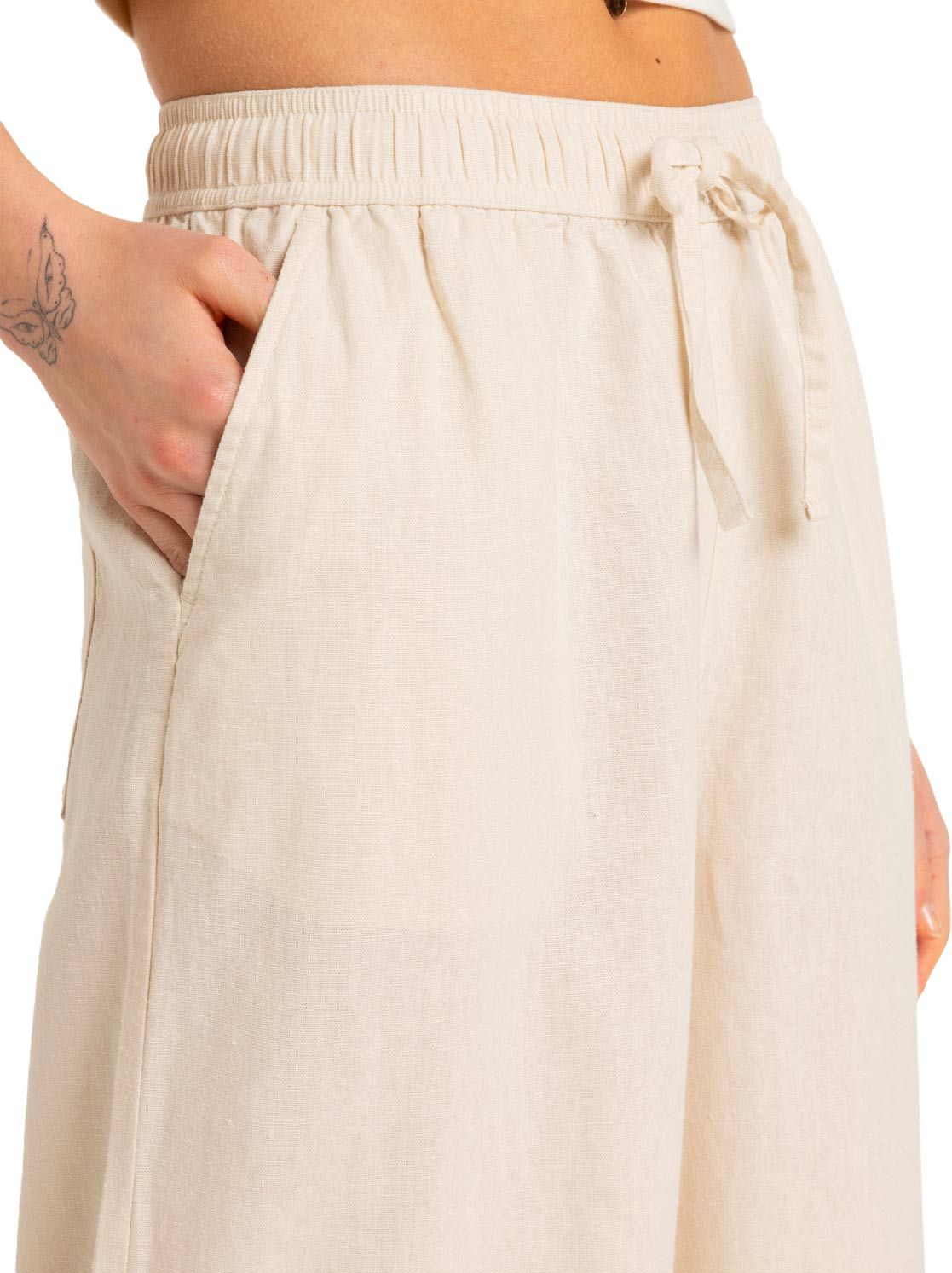 Pantalon Roxy Lekeitio Break Mid Pant Parchment femme : coupe large en lin-viscose, taille élastiquée, style casual au quotidien.