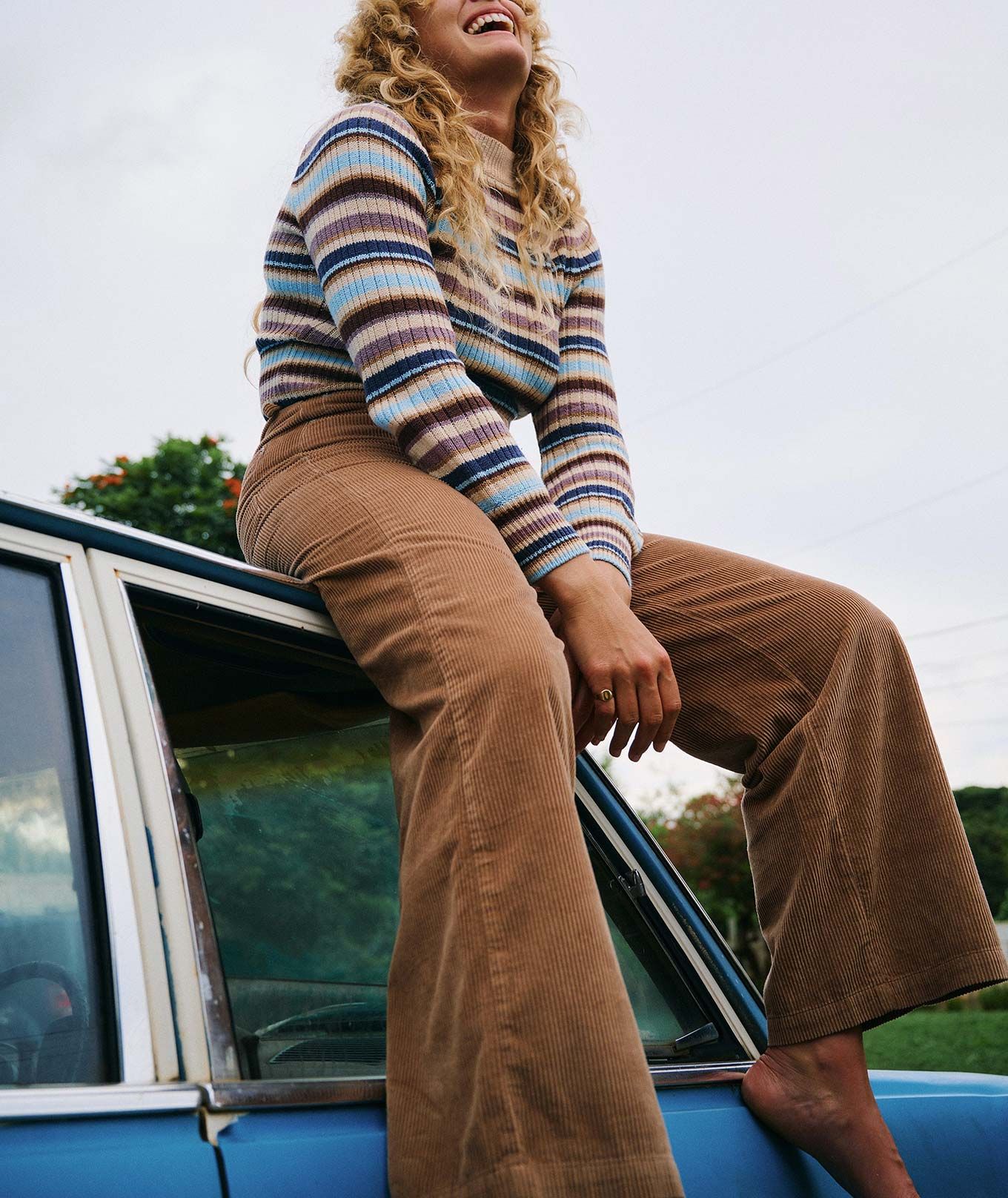Silhouette longue, taille haute pour un maintien optimal, jambes évasées inspirées du look rétro.