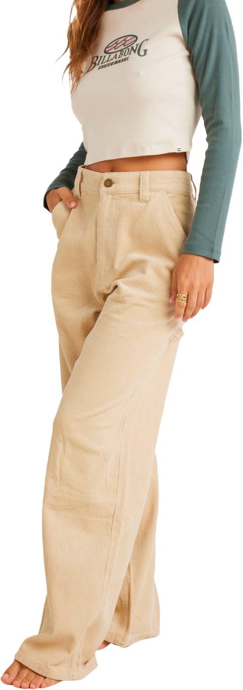 Billabong Tones Collet Carpenter Pant Oat : pantalon cargo taille haute en coton 100 %, coupe droite, multiples poches et fermeture zippée boutonnée pour un style décontracté fonctionnel.