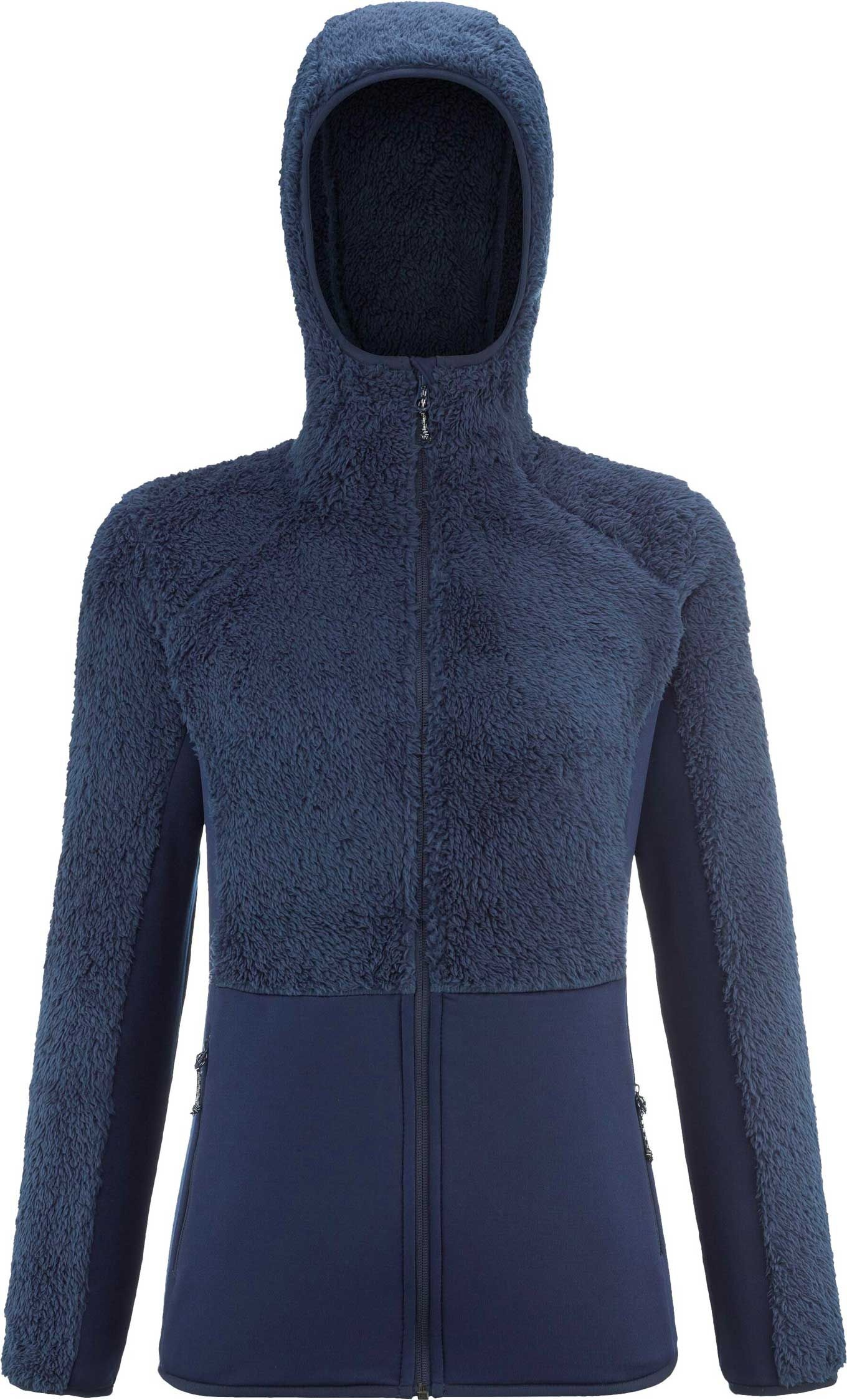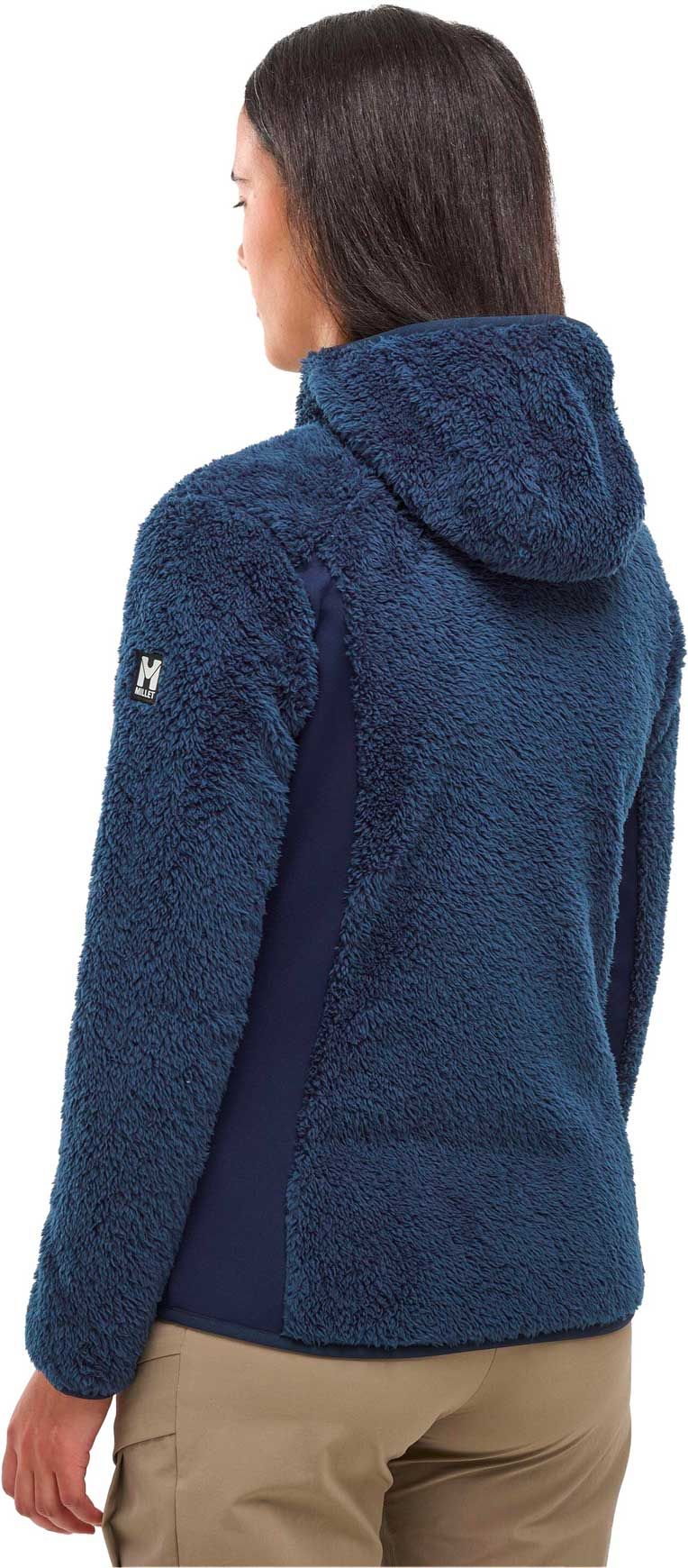 Millet Chamonix Highloft Hoodie Saphir, polaire technique femme stretch et respirante pour l’escalade et l’outdoor, offre légèreté, liberté de mouvement et deux poches zippées.